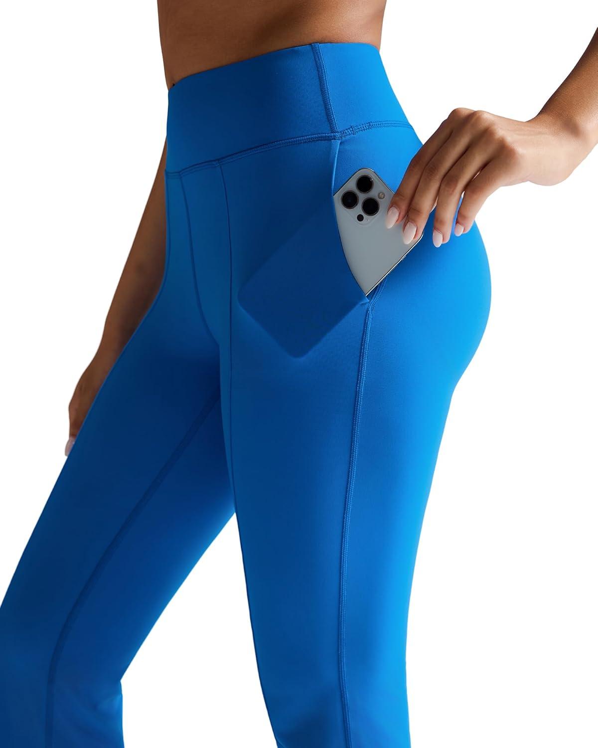 RUNNING GIRL Flare Pants with Pockets, High Waist Yoga Pants Buttery Soft Bootcut Wide Leg Leggings for Women(Blue)