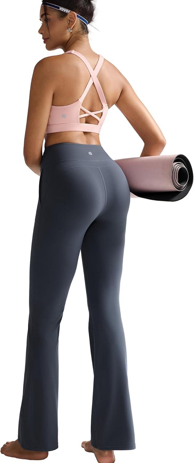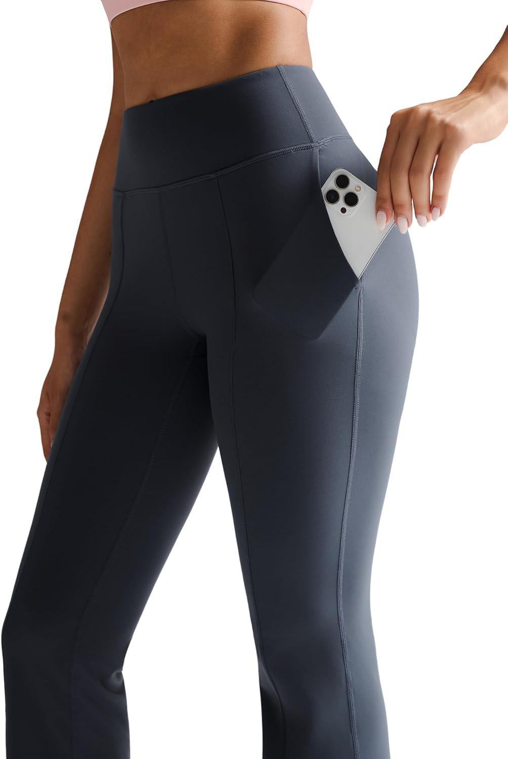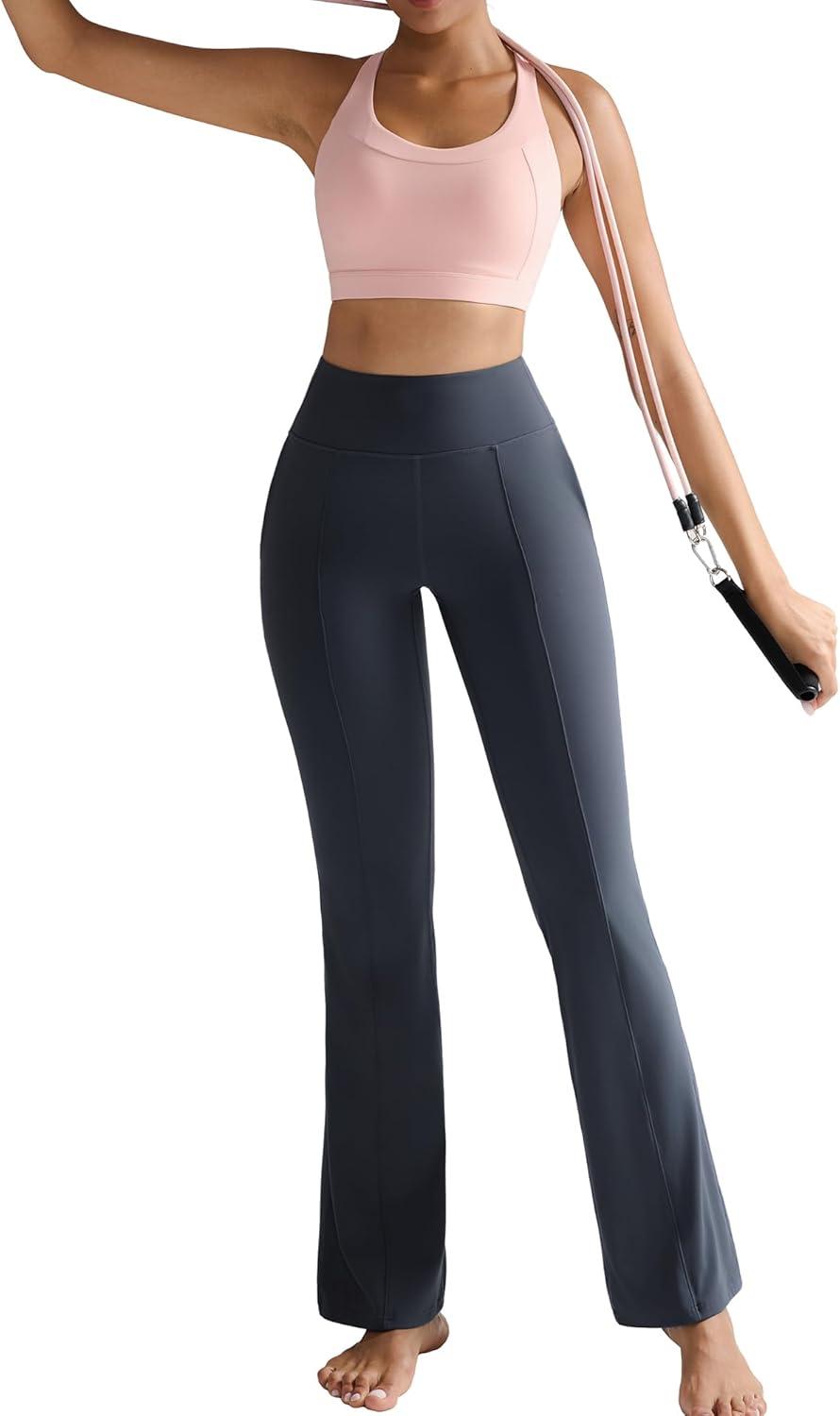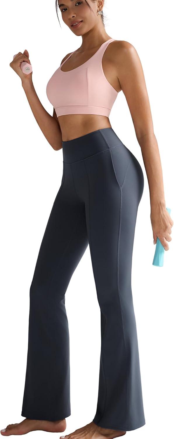 RUNNING GIRL Flare Pants with Pockets, High Waist Yoga Pants Buttery Soft Bootcut Wide Leg Leggings for Women(Deep Grey)