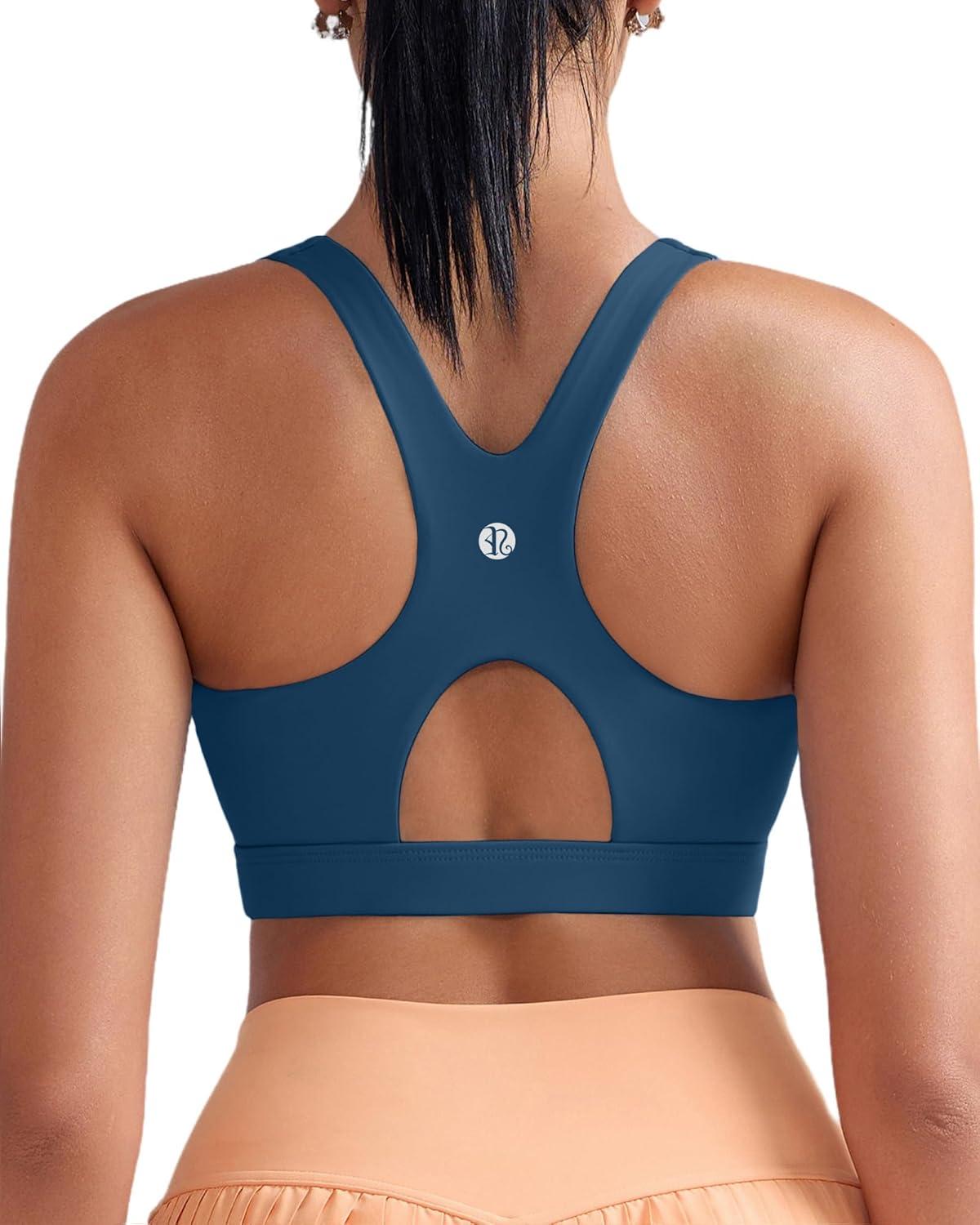 RUNNING GIRL High Impact Sports Bra for Women,Zip Front Adjustable Strap Criss-Cross Back Padded Workout Yoga Bra(A-dark Blue)
