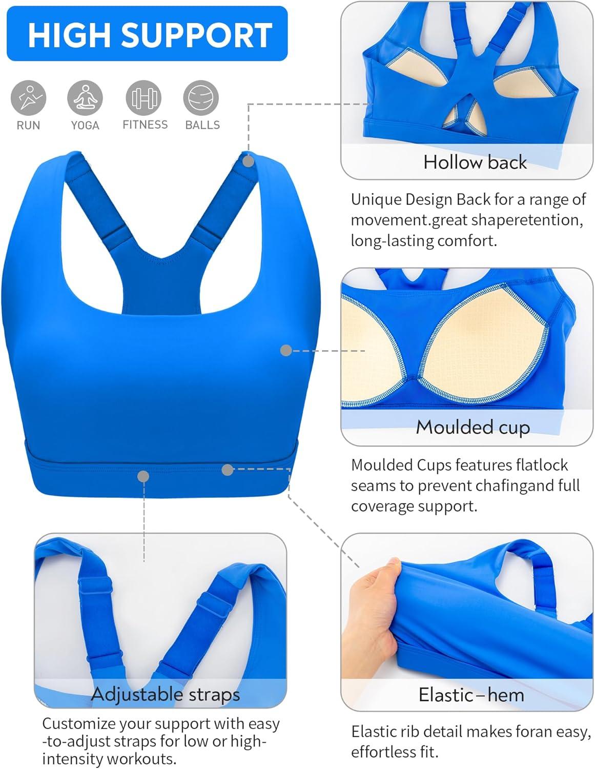 RUNNING GIRL High Impact Sports Bras for Women High Support Molded Cups, Adjustable Straps Sports Bra with Sewn in Pads(Dazzling Blue)