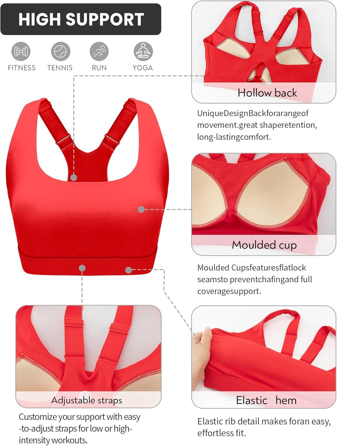 RUNNING GIRL High Impact Sports Bras for Women High Support Molded Cups, Adjustable Straps Sports Bra with Sewn in Pads(Red)