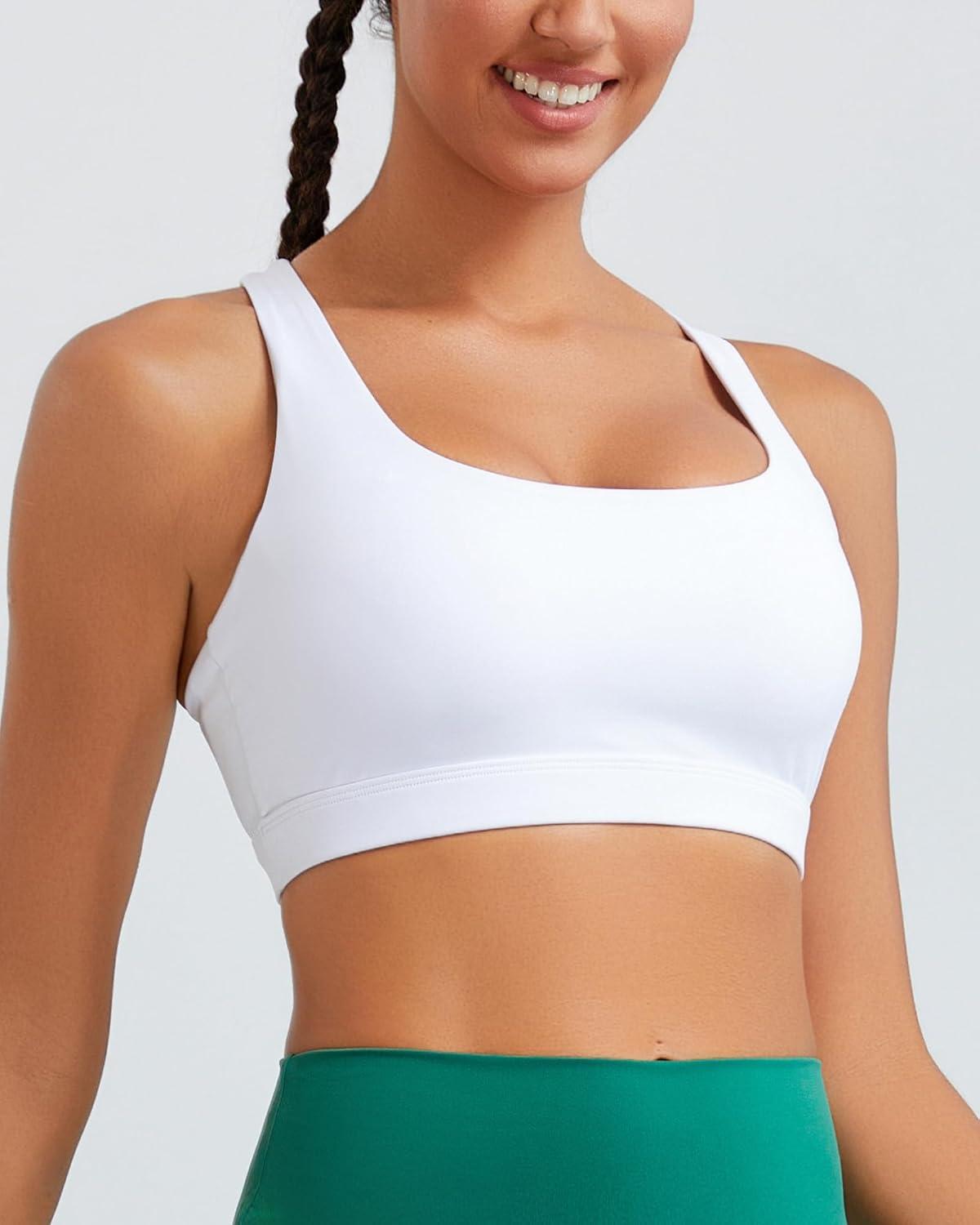 RUNNING GIRL High Impact Sports Bras for Women High Support Molded Cups, Adjustable Straps Sports Bra with Sewn in Pads(White)