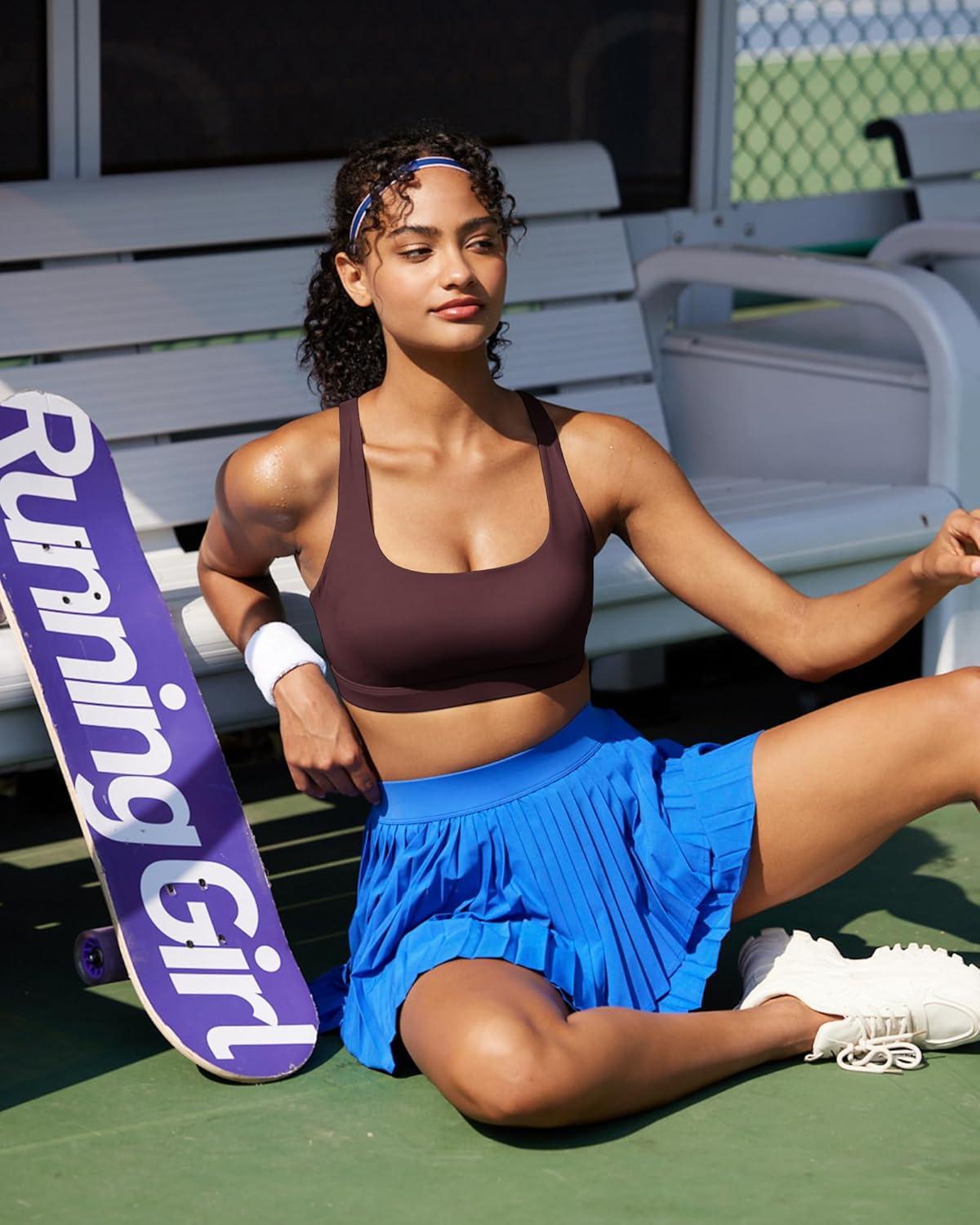RUNNING GIRL High Impact Sports Bras for Women, High Support Running Sports Bra Moulded Cup Strappy Sports Bras(A-v-brown)
