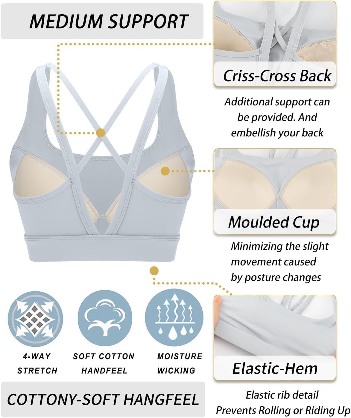 RUNNING GIRL High Impact Sports Bras for Women, High Support Running Sports Bra Moulded Cup Strappy Sports Bras(A-v-grey)