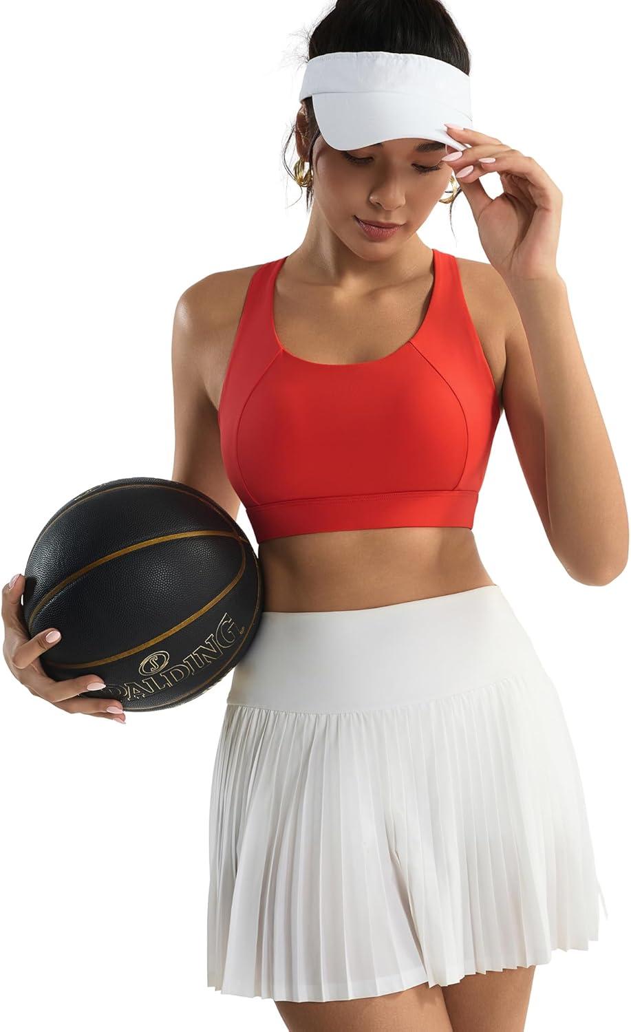 RUNNING GIRL High Impact Sports Bras for Women, High Support Running Strappy Women’s Sports Bra with Sewn in Pads(H-red)