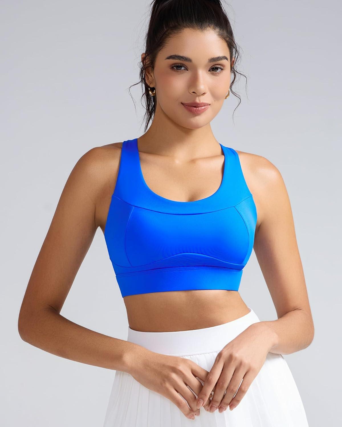 RUNNING GIRL High Impact Sports Bras for Women – Scoop Neck Strappy Sports Bra High Support Moulded Cup Workout Bra(Bright Blue)