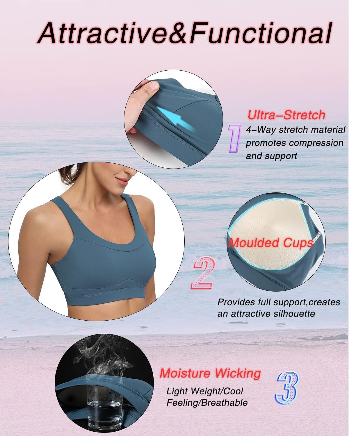 RUNNING GIRL High Impact Sports Bras for Women,Racerback Running Bra Workout Crop Tank Tops Longline Sports Bra Push up(D-navy Blue)