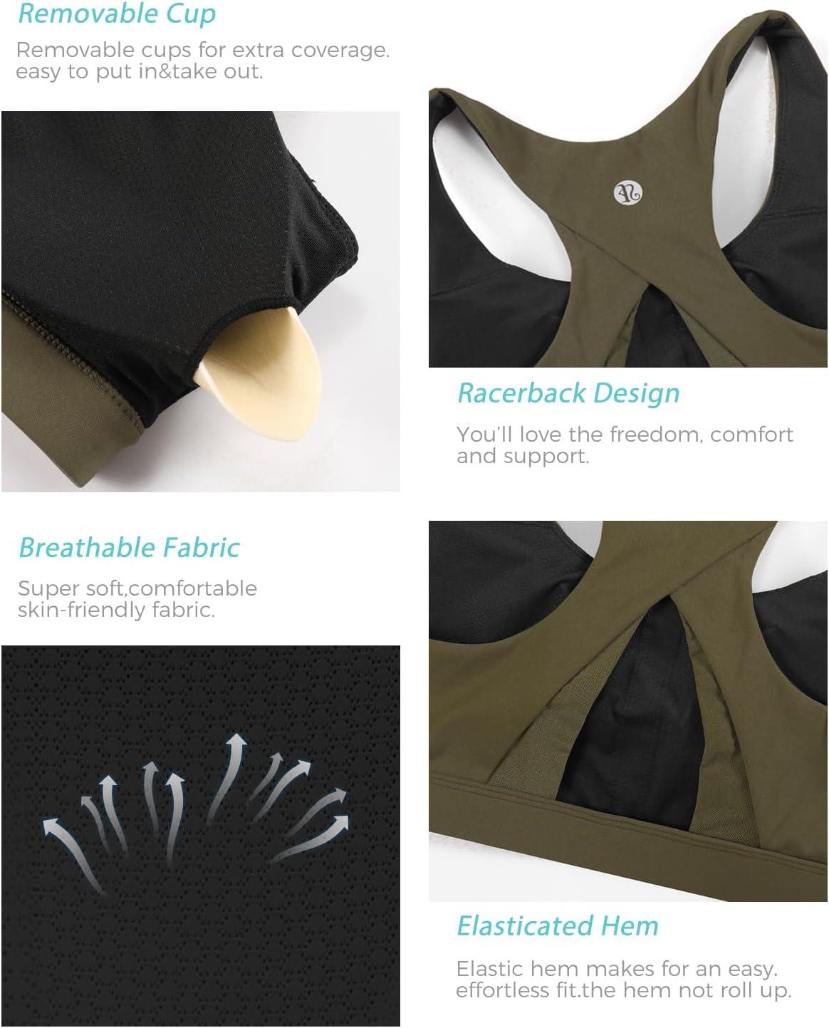 RUNNING GIRL High Impact Sports Bras for Women,Racerback Running Bra Workout Crop Tank Tops Longline Sports Bra Push up(Y-ash Green)