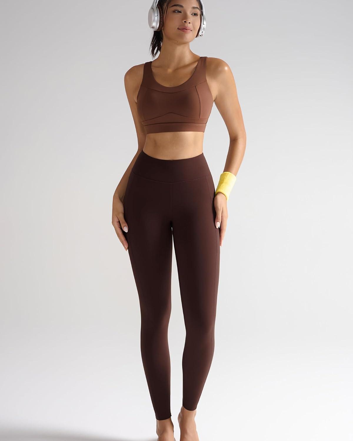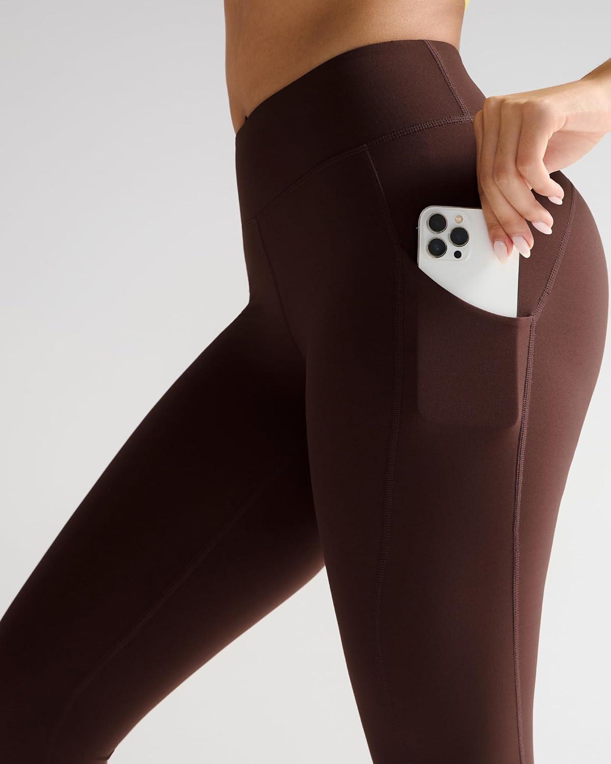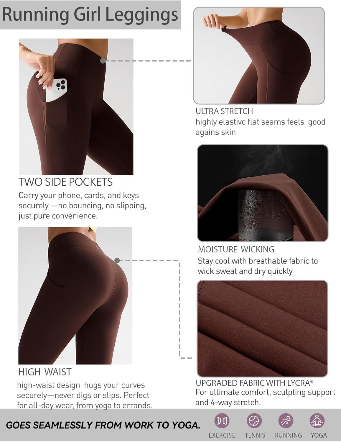 RUNNING GIRL Leggings with Pockets for Women,High Waist Athletic Yoga Pants with Tummy Control Buttery Soft(Brown)