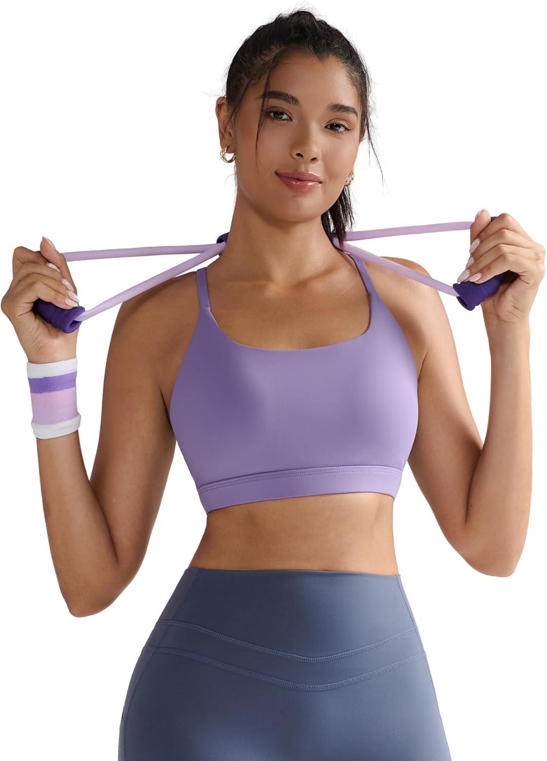 RUNNING GIRL Light Impact Sports Bras for Women, Molded Cup Thin Strappy Sports Bra with Sewn in Pads(Misty Purple)