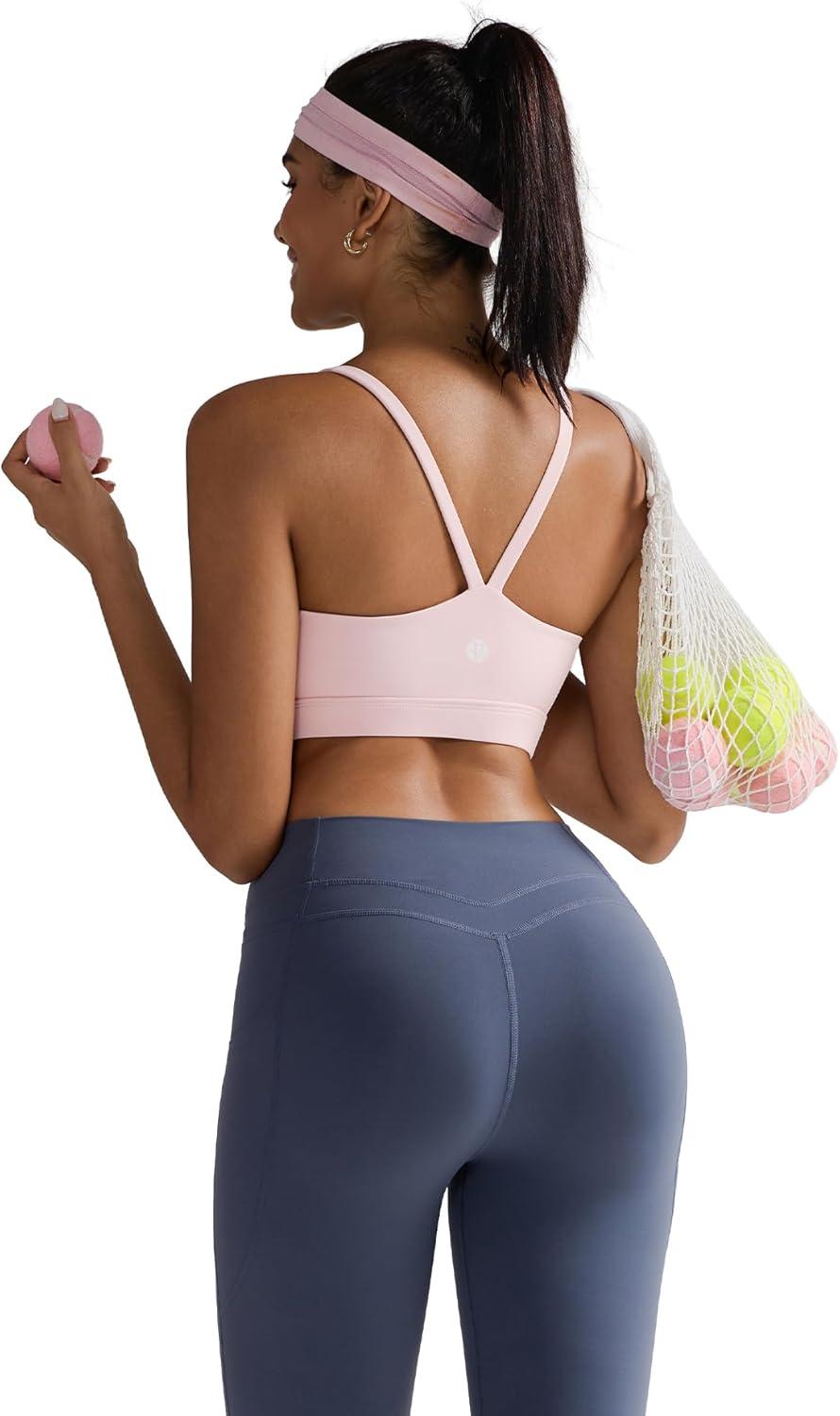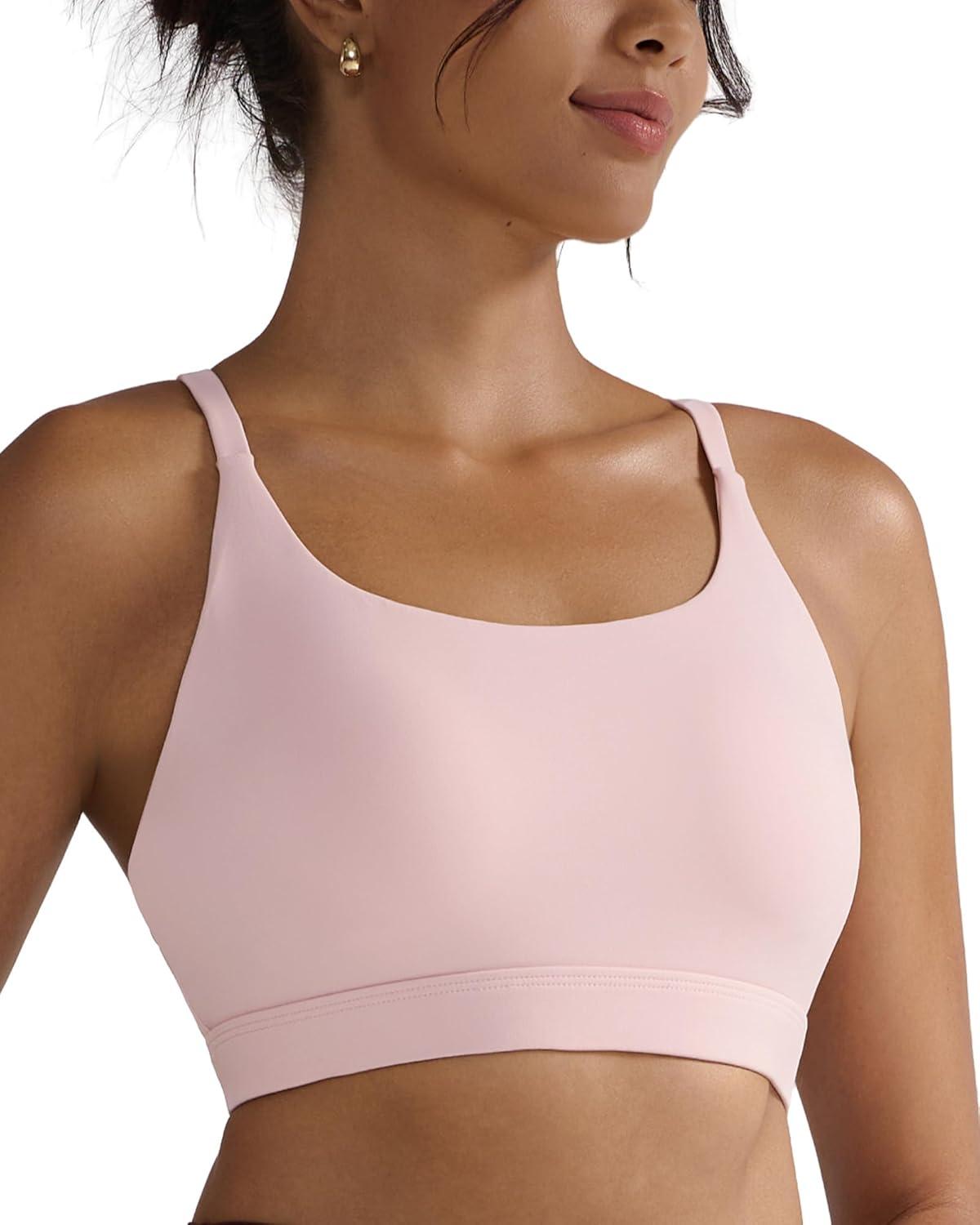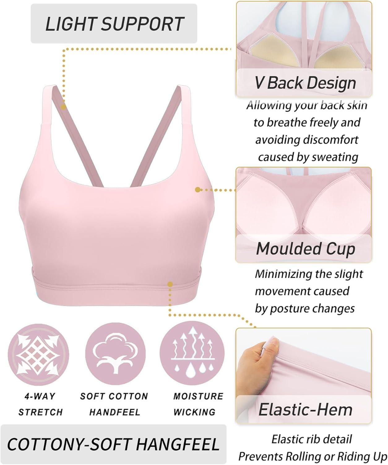 RUNNING GIRL Light Impact Sports Bras for Women, Molded Cup Thin Strappy Sports Bra with Sewn in Pads(Pink)