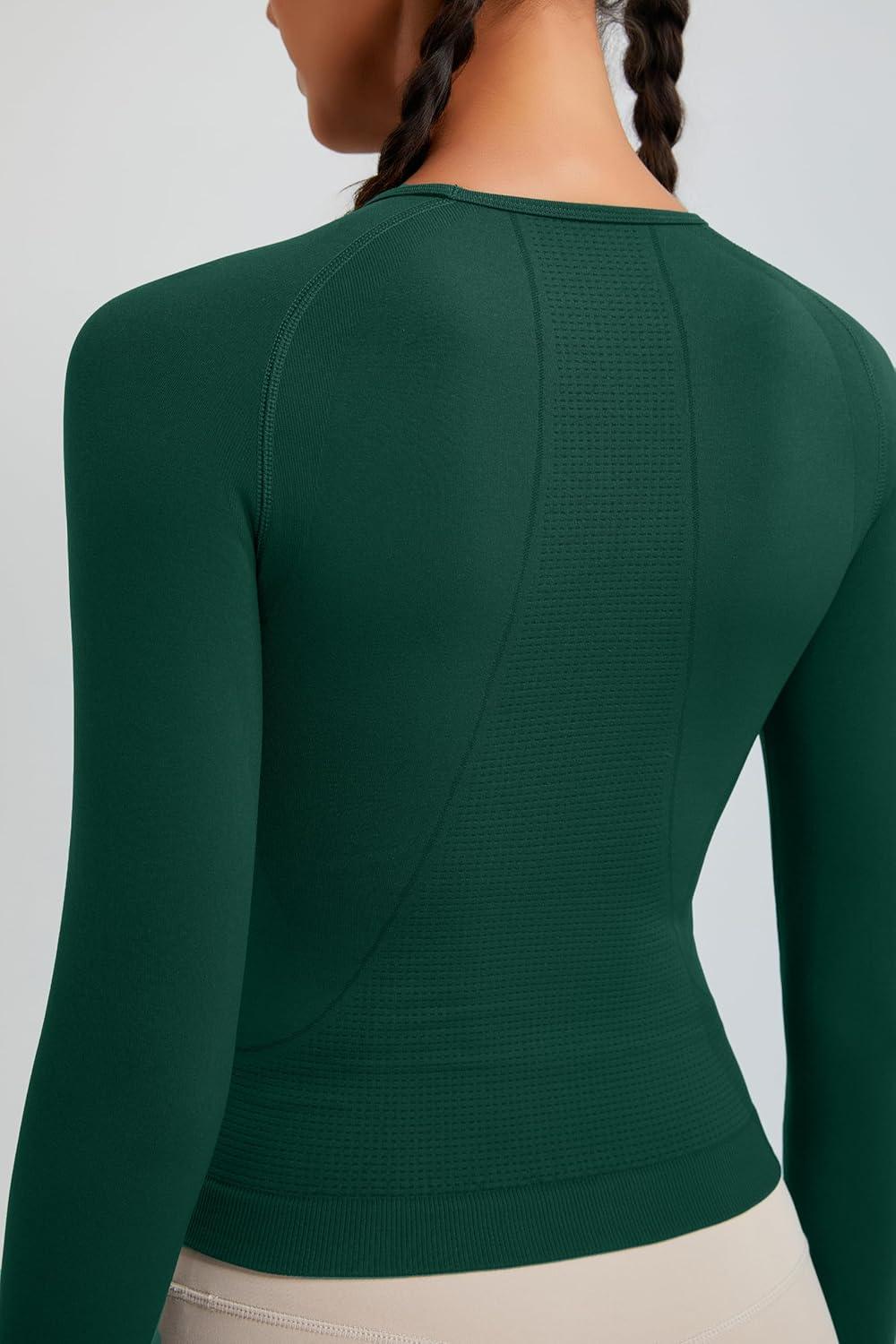 RUNNING GIRL Long Sleeve Yoga Shirts for Women, Soft Fitted Seamless Stretchy Casual Crew Neck Athletic Basic Shirt(A-forest Green)