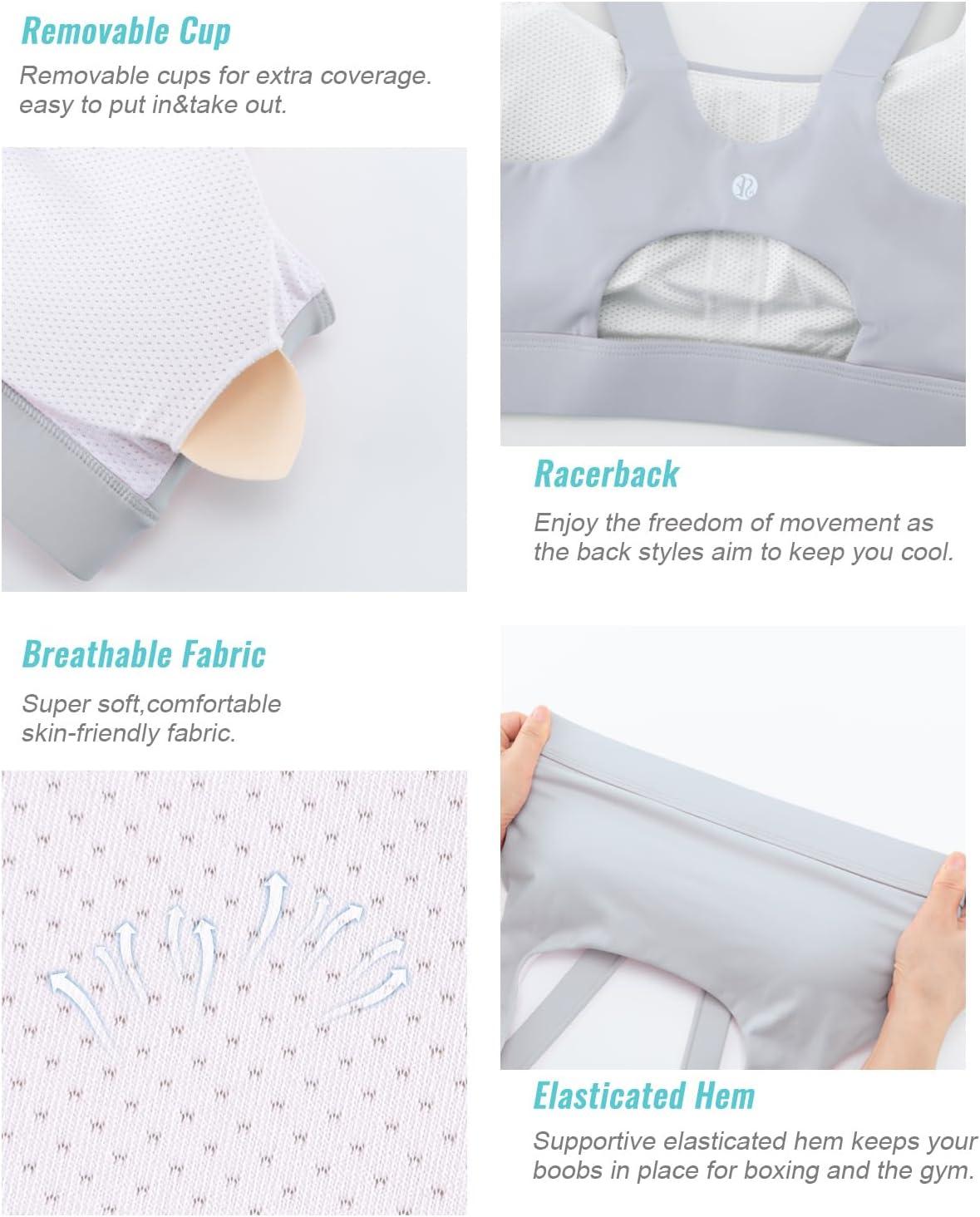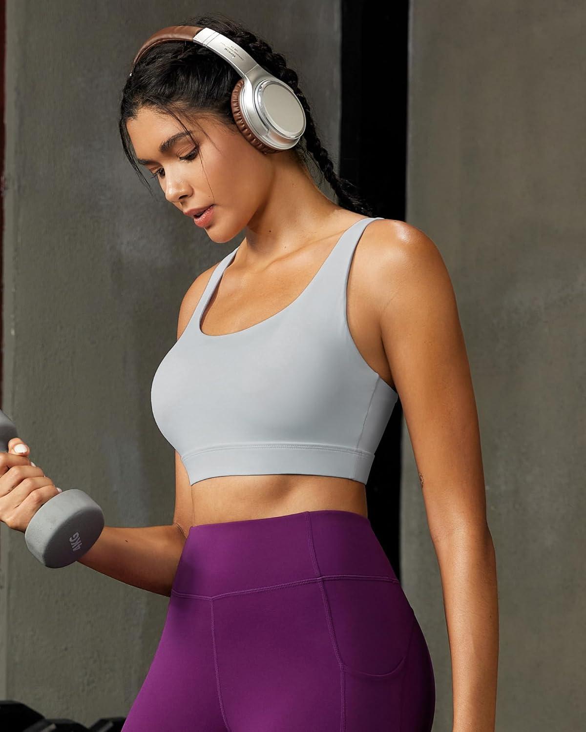 RUNNING GIRL Padded Sports Bras for Women,Scoop Neck Racerback Sports Bra Medium Support Workout Yoga Bra(Icy Grey)