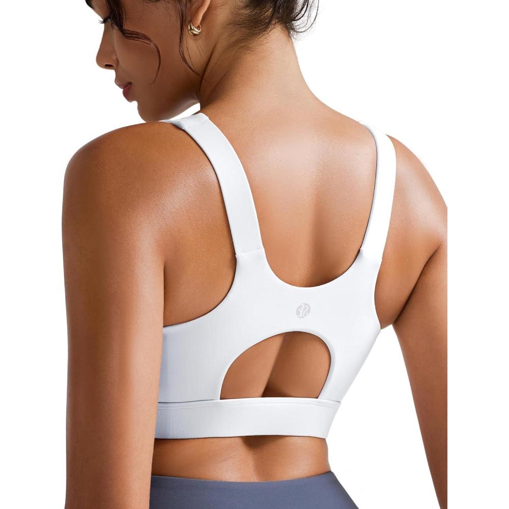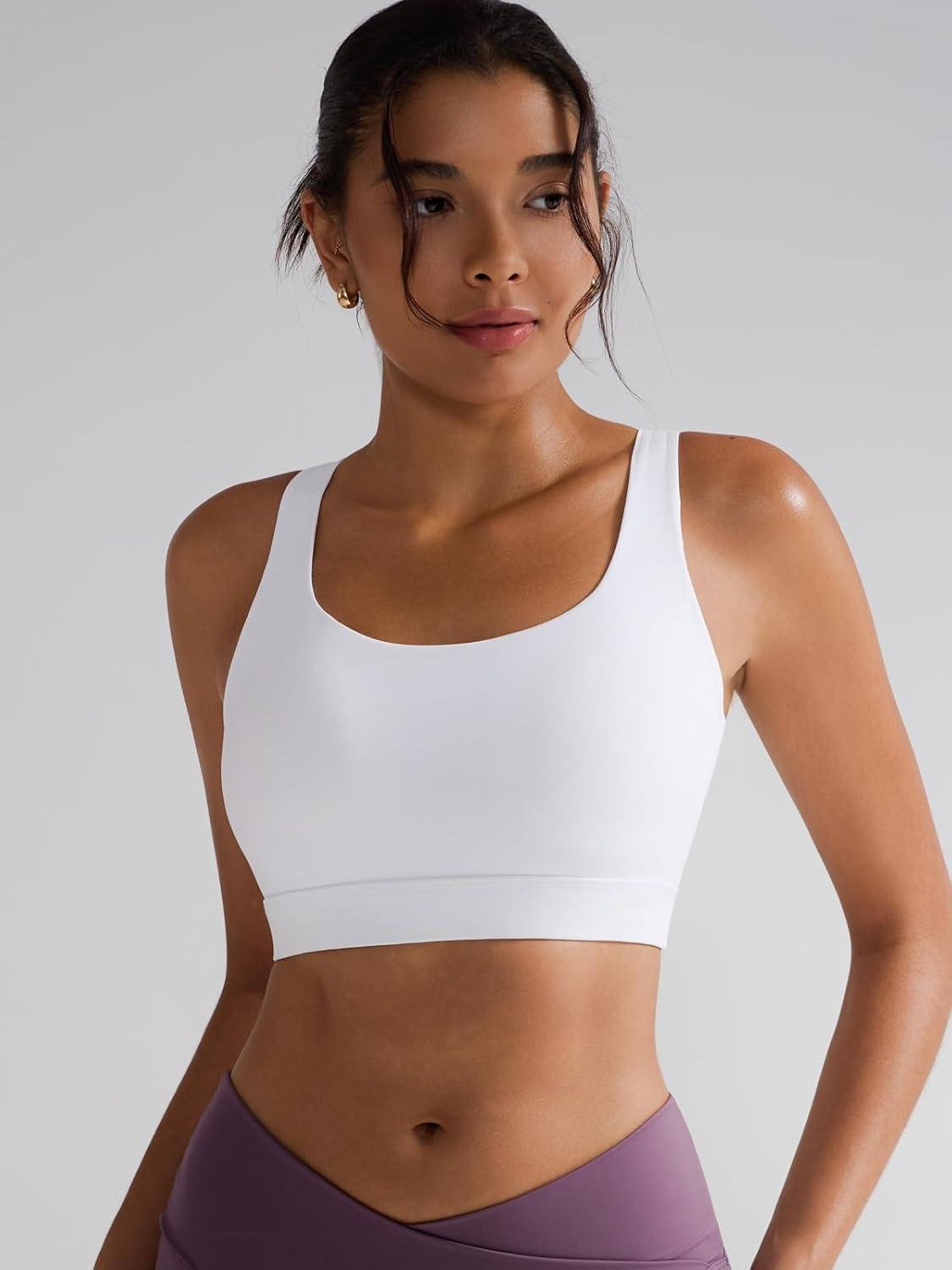 RUNNING GIRL Padded Sports Bras for Women,Scoop Neck Racerback Sports Bra Medium Support Workout Yoga Bra(White)