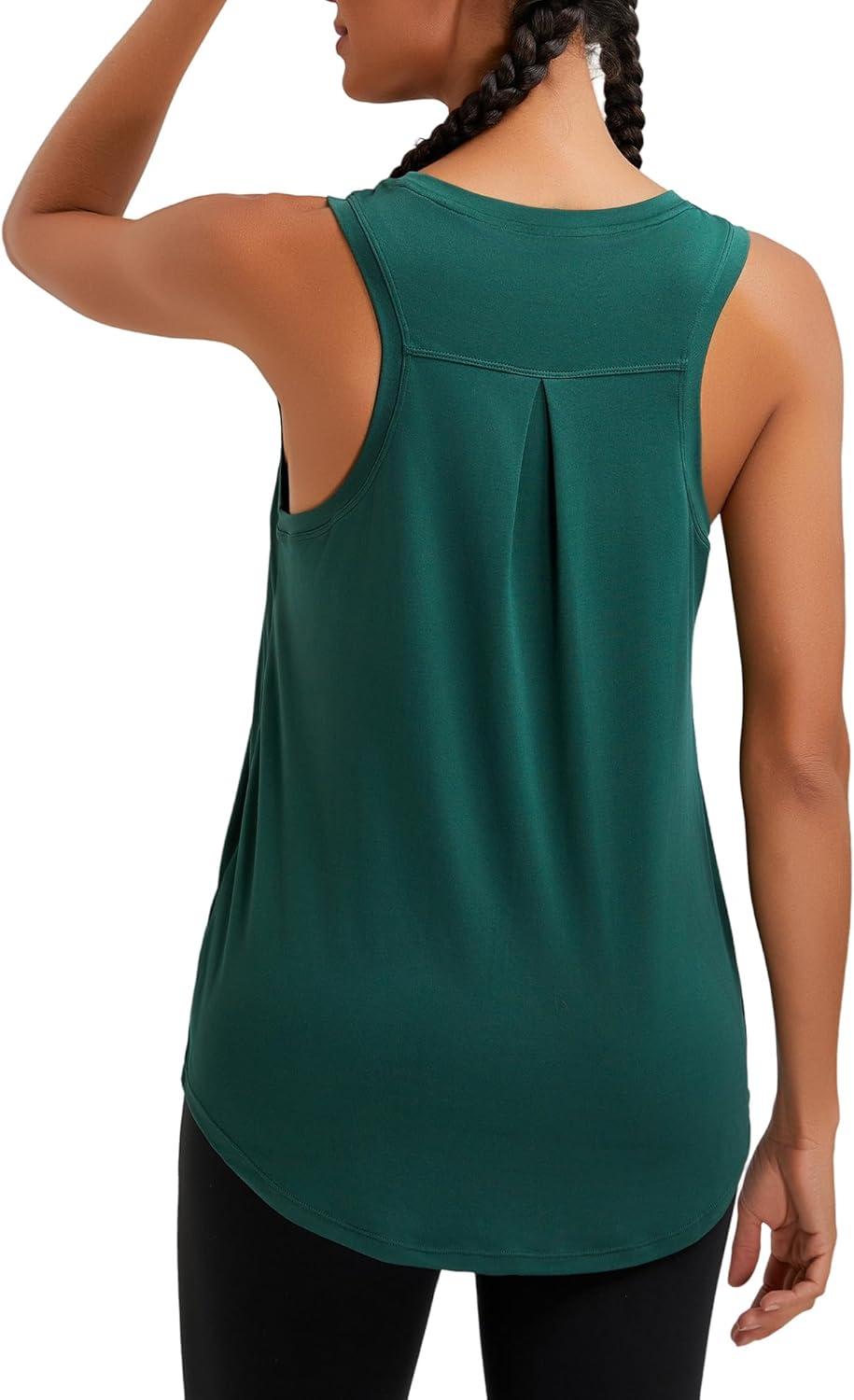 RUNNING GIRL Racerback Running Yoga Athletic Tank Tops for Women, Sleeveless Workout Tank Tops Woman Tennis Shirts(B-green)