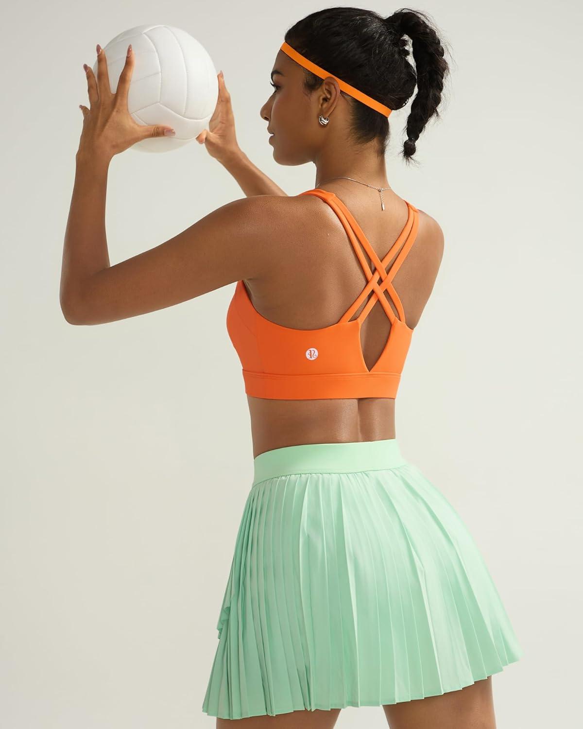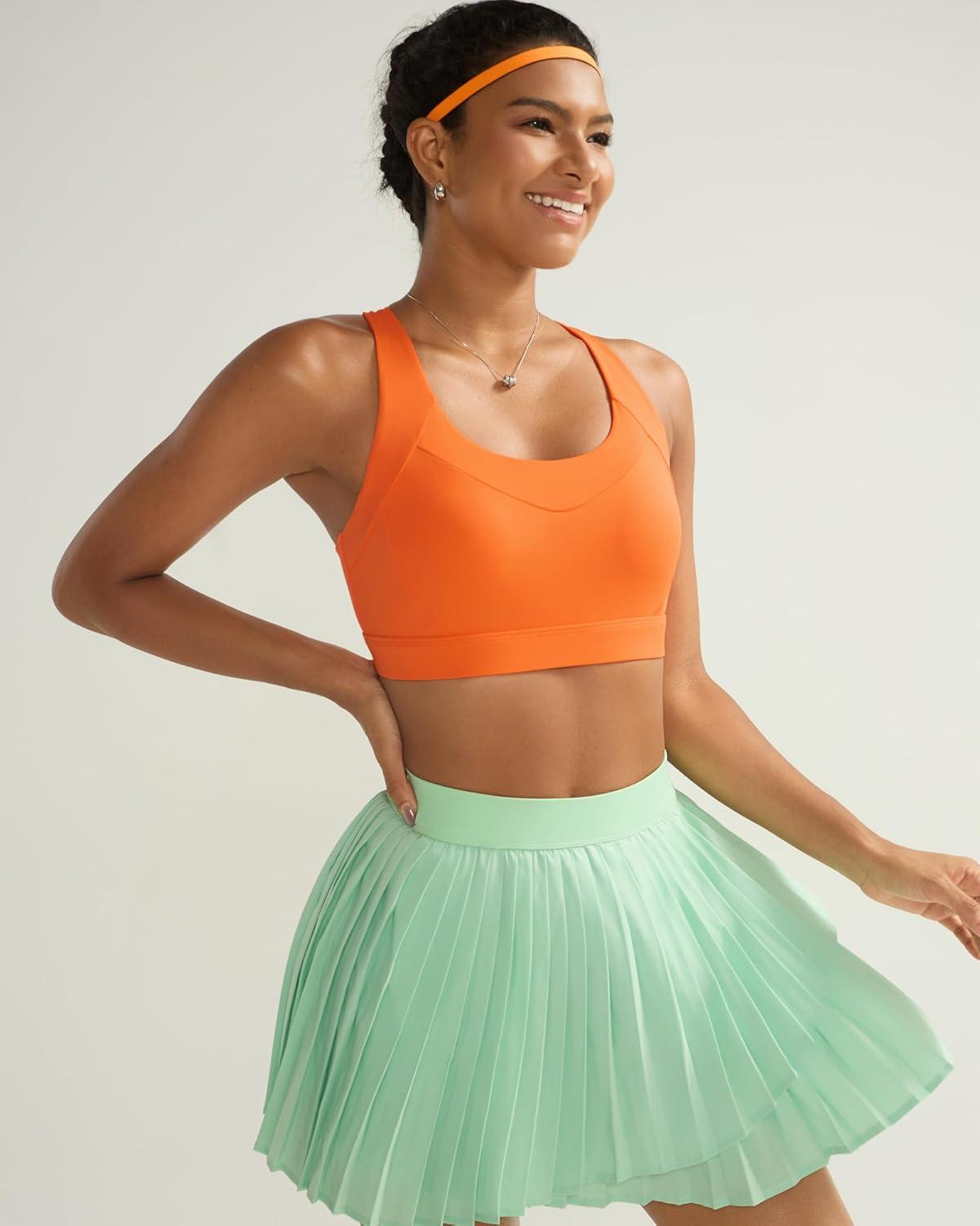 RUNNING GIRL Sports Bra for Women High Support, Molded Cup High Impact Sports Bras with Sewn in Pads Strappy Running Bra(Orange)