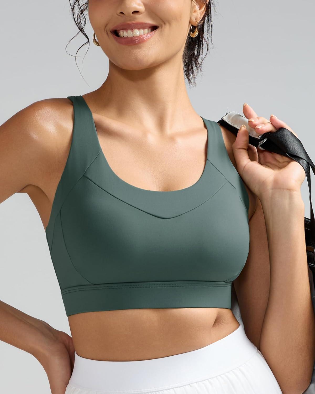 RUNNING GIRL Sports Bra for Women High Support, Molded Cup High Impact Sports Bras with Sewn in Pads Strappy Running Bra(Sage Green)