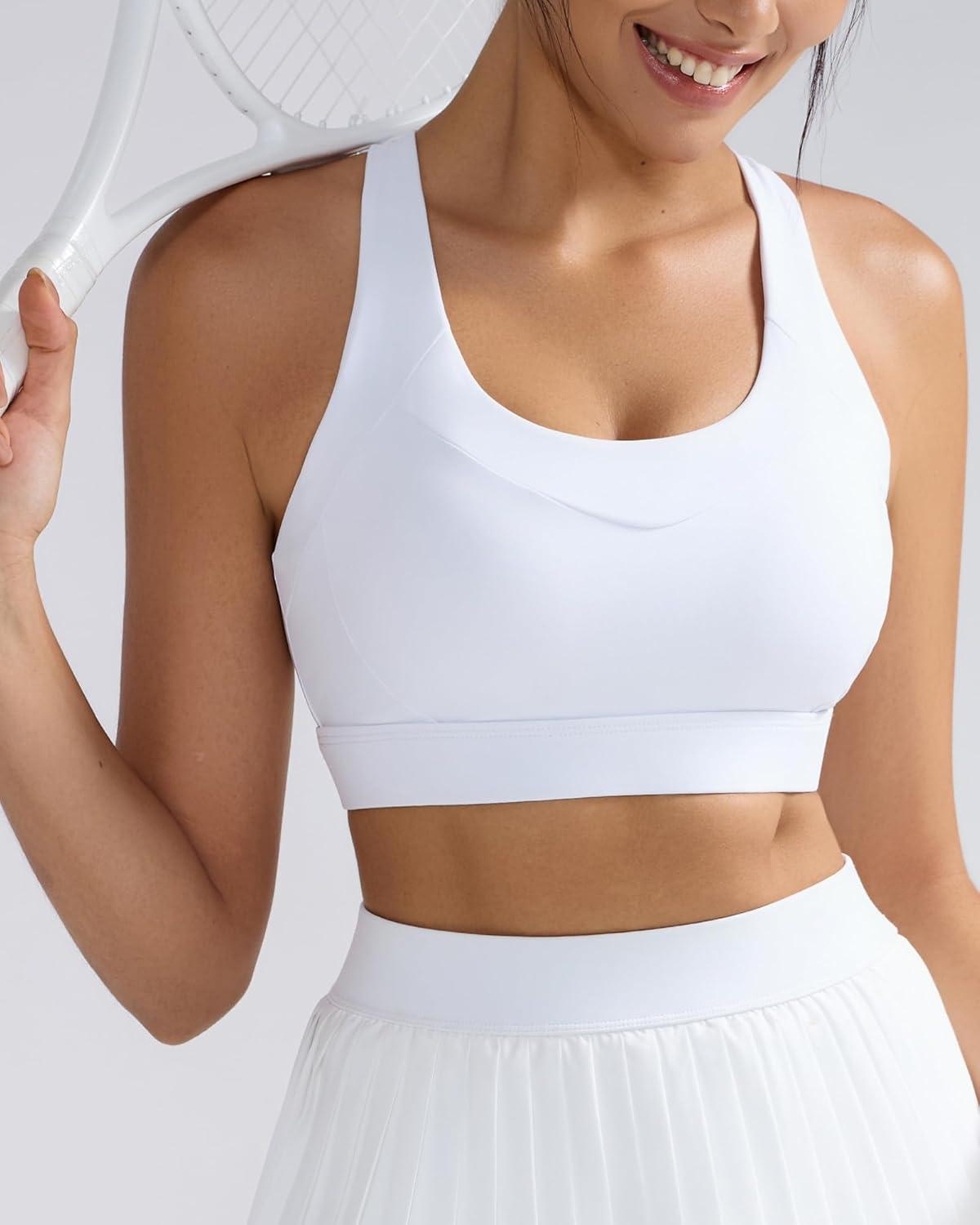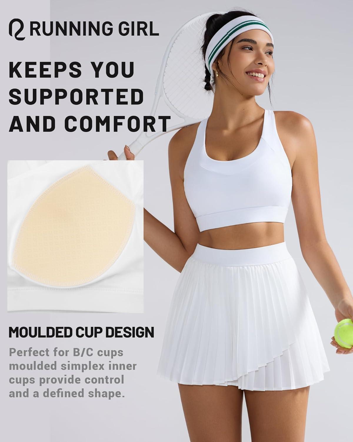 RUNNING GIRL Sports Bra for Women High Support, Molded Cup High Impact Sports Bras with Sewn in Pads Strappy Running Bra(White)
