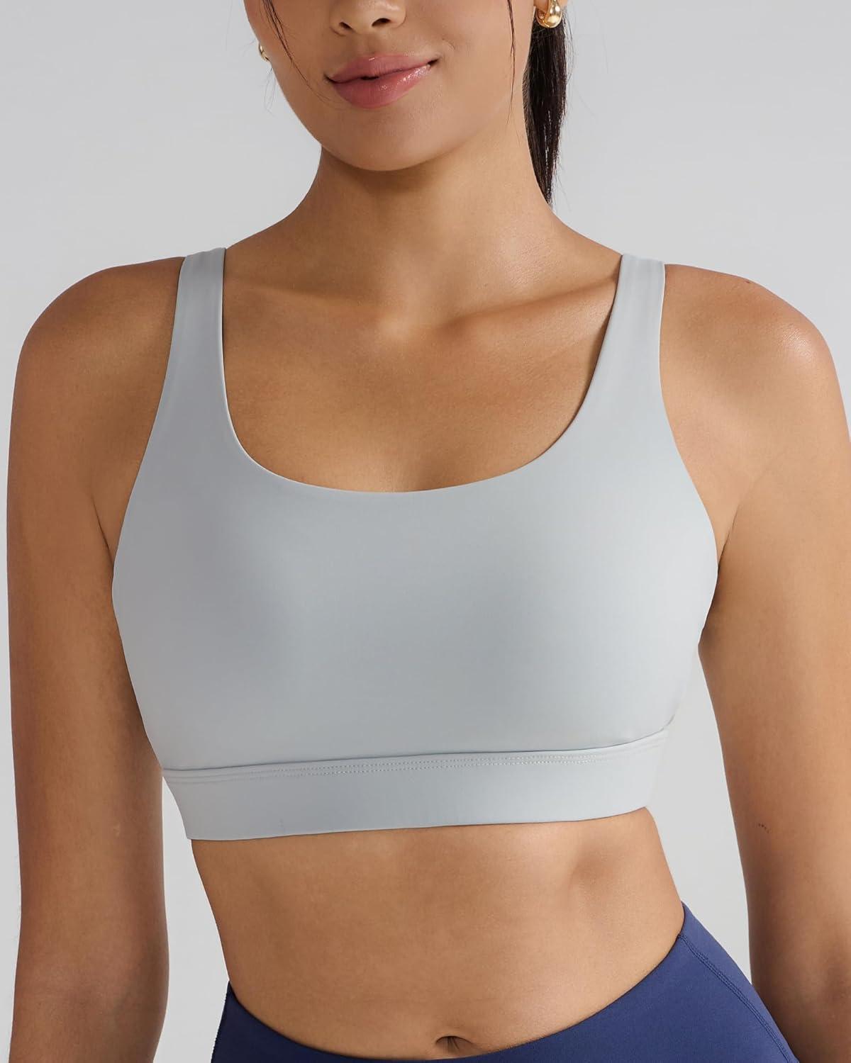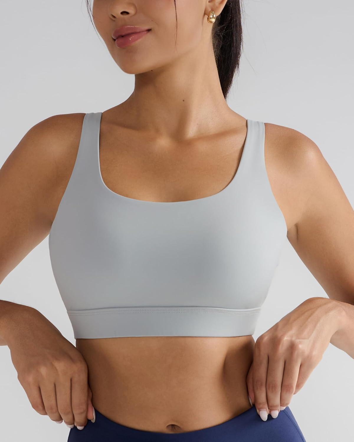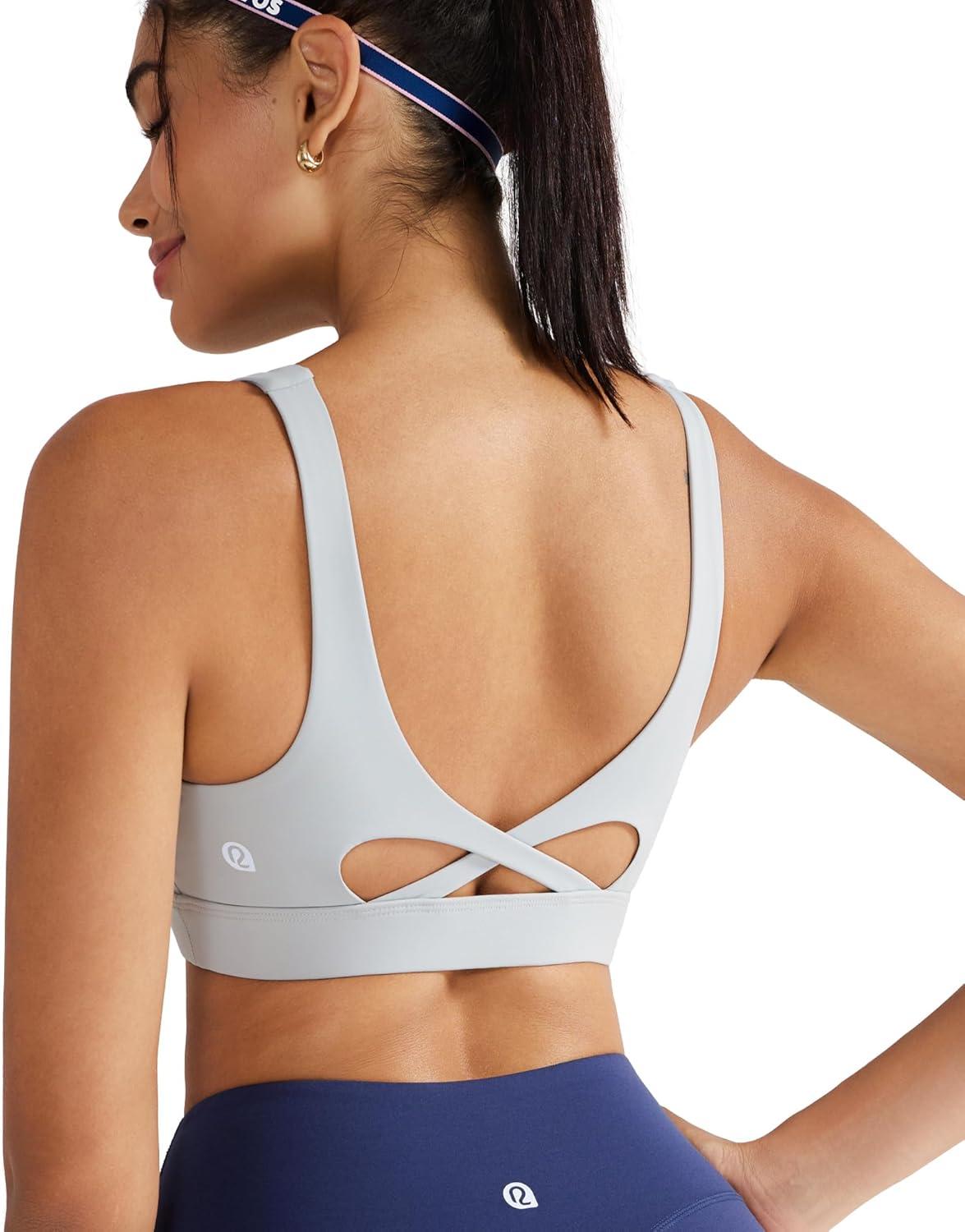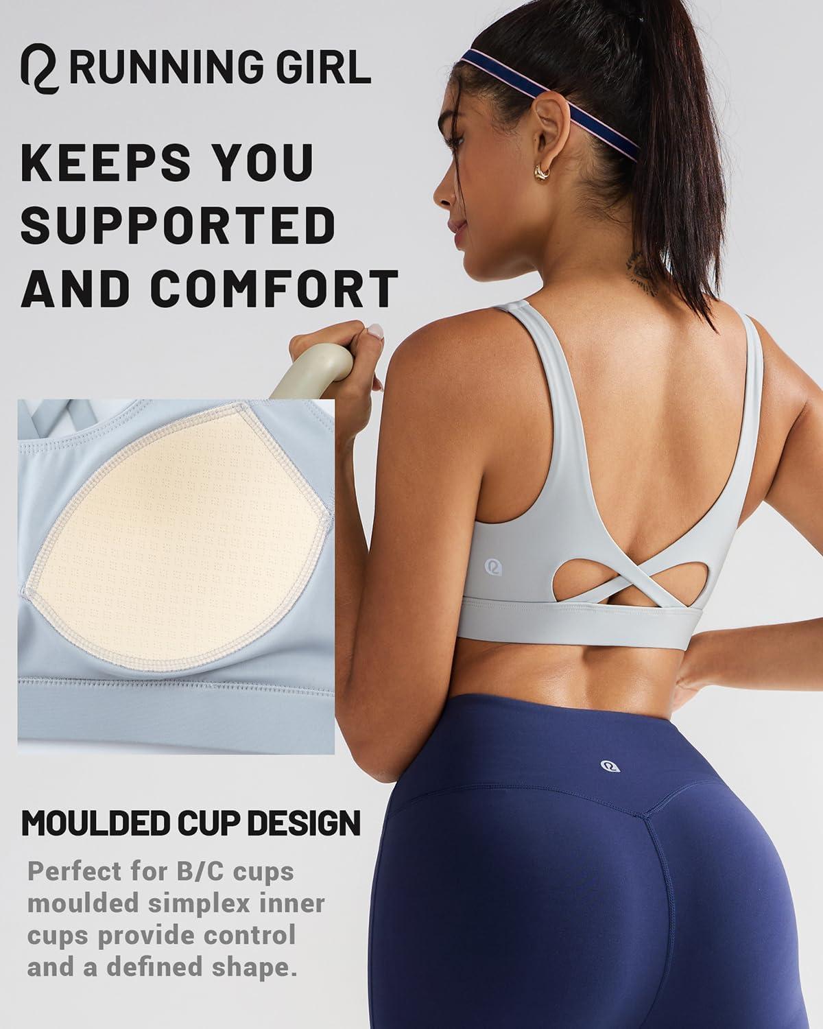 RUNNING GIRL Sports Bra for Women High Support, Molded Cup High Impact Sports Bras with Sewn in Pads Workout Running Bra(Silver Grey)
