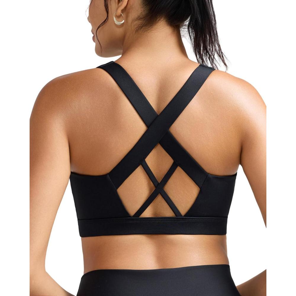 RUNNING GIRL Sports Bra for Women High Support,Molded Cup High Impact Sports Bras with Sewn in Pads(A-black)