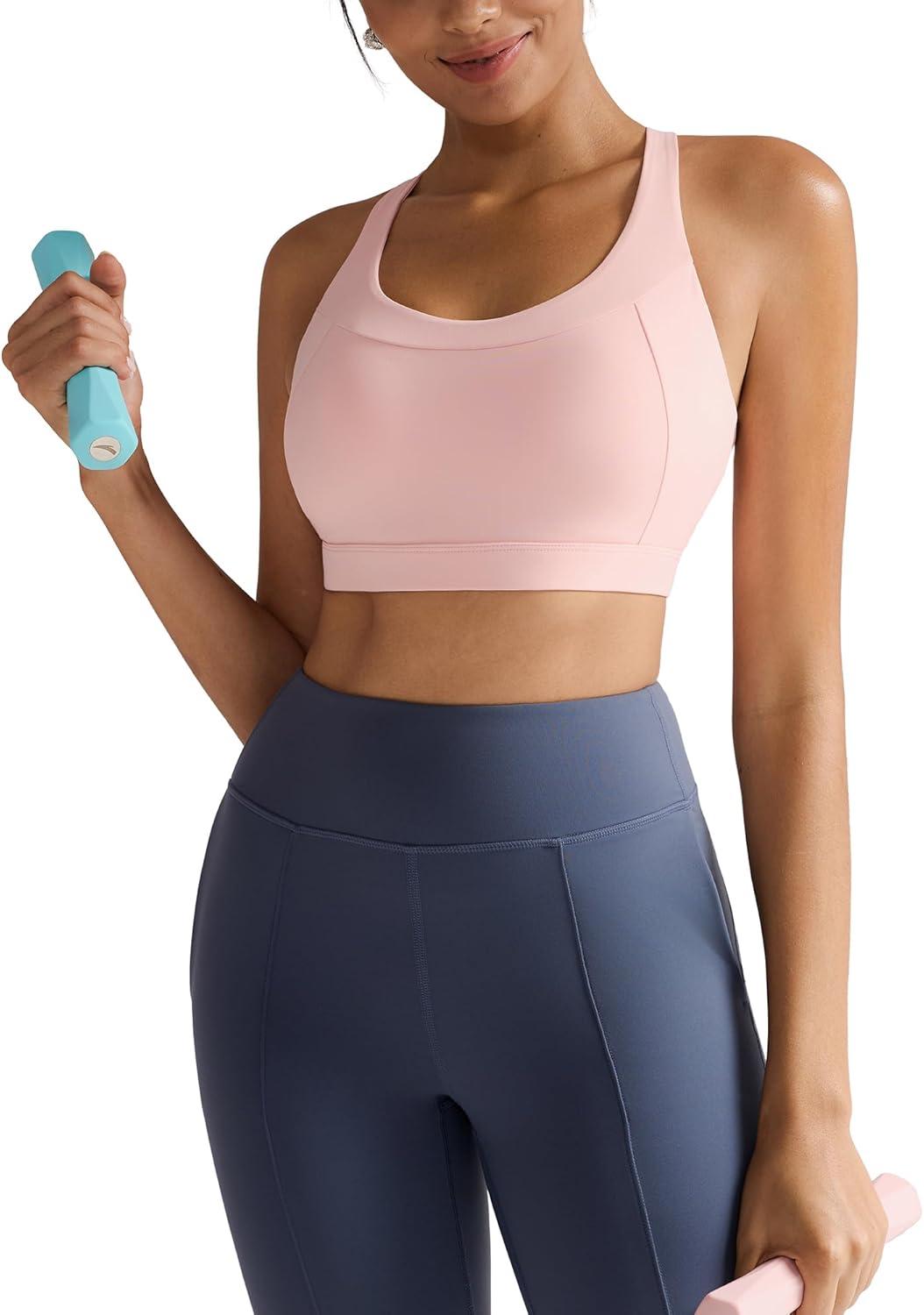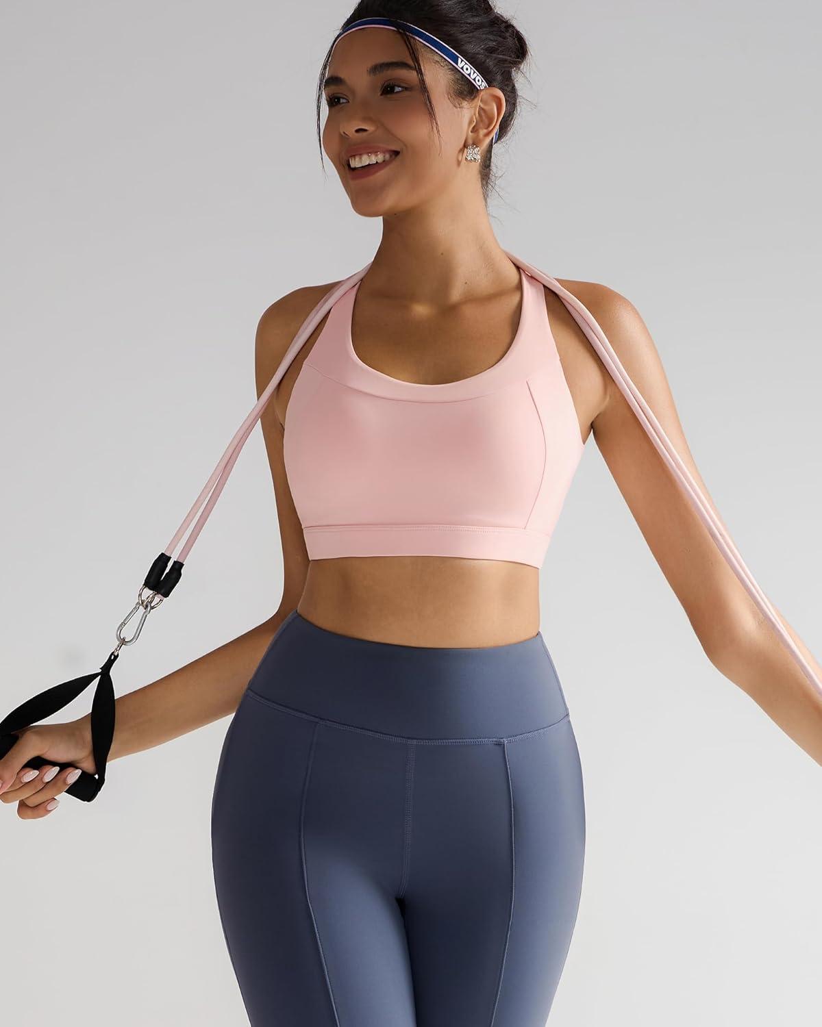 RUNNING GIRL Sports Bra for Women High Support,Molded Cup High Impact Sports Bras with Sewn in Pads(Pink)