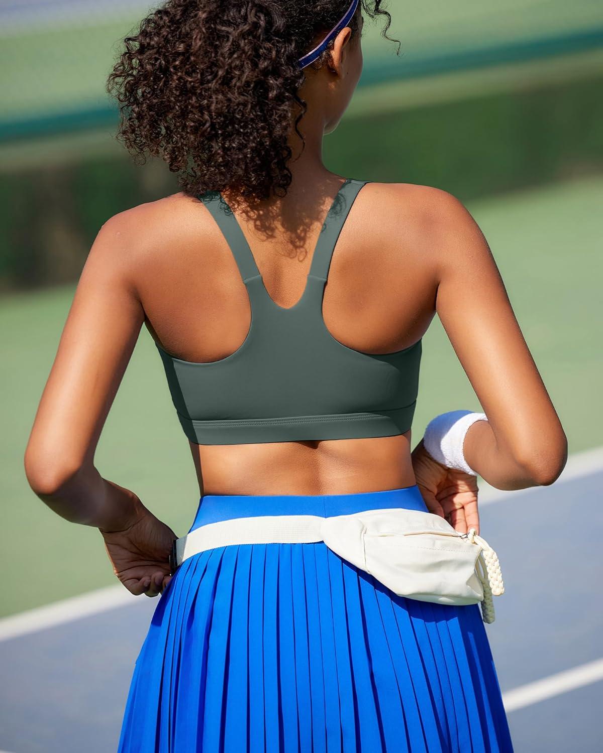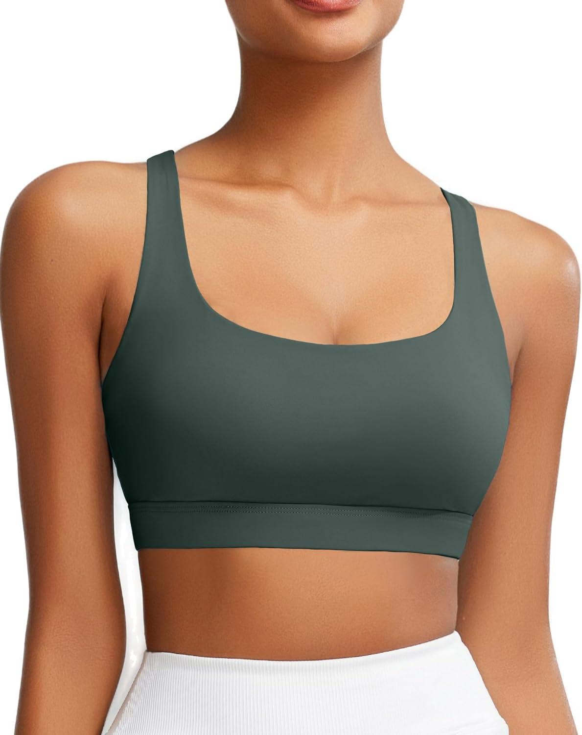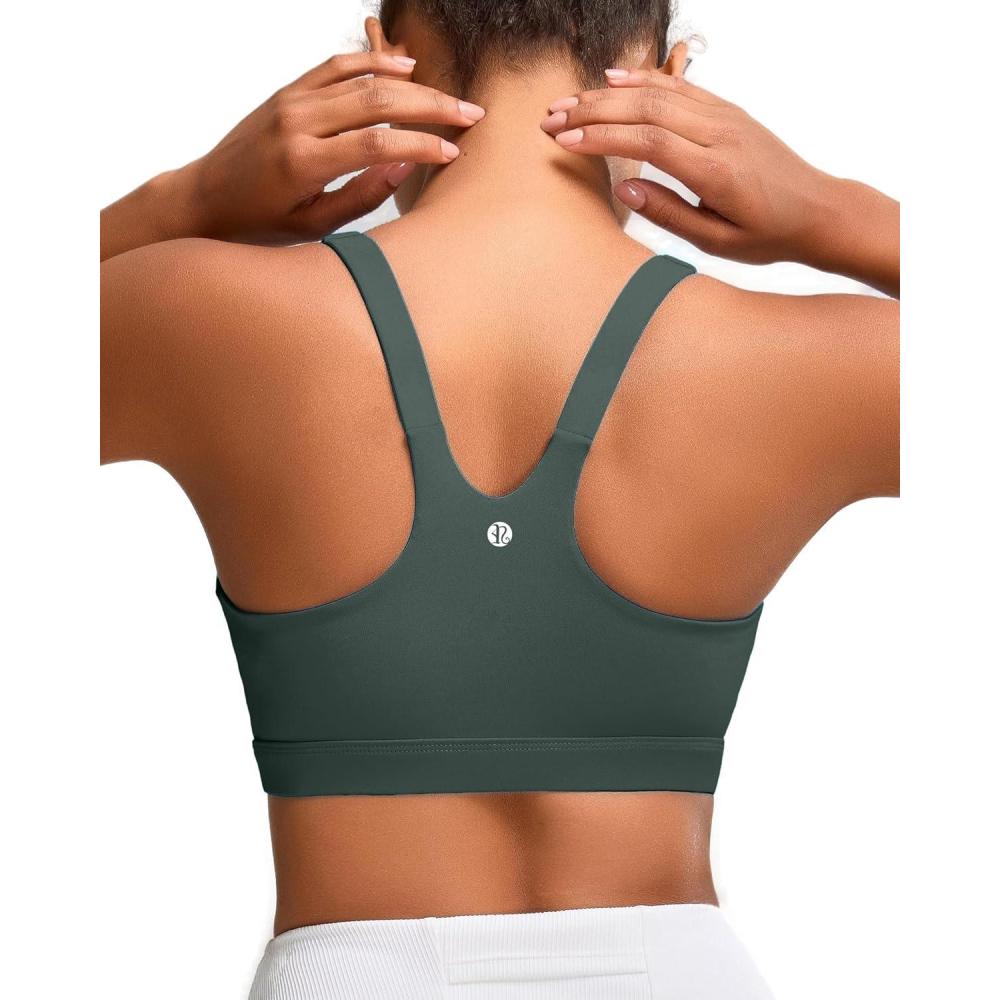 RUNNING GIRL Sports Bra for Women, Molded Cup High Impact Sports Bras for Women with Sewn in Pads(Dark Green)