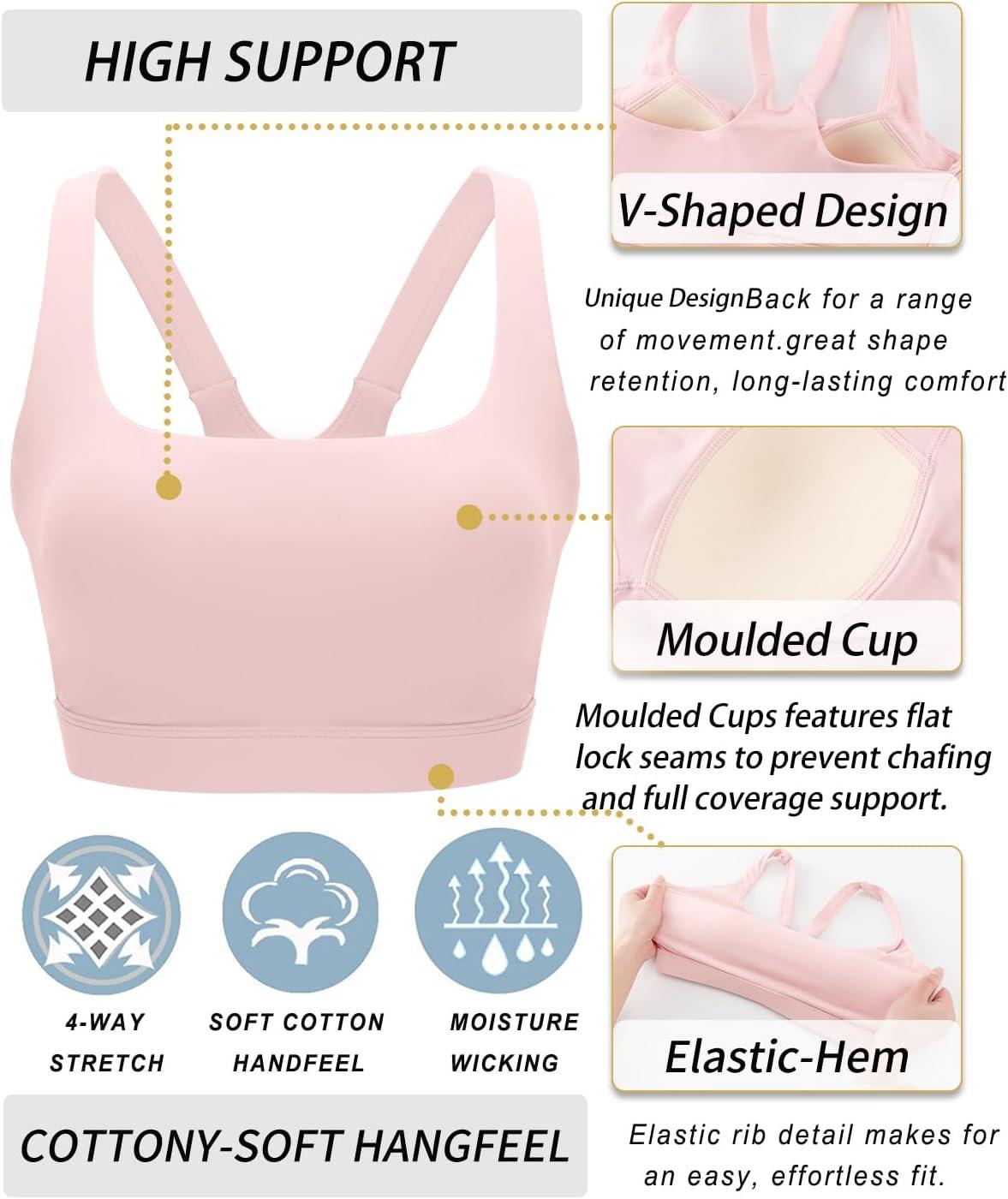 RUNNING GIRL Sports Bra for Women, Molded Cup High Impact Sports Bras for Women with Sewn in Pads(Pink)