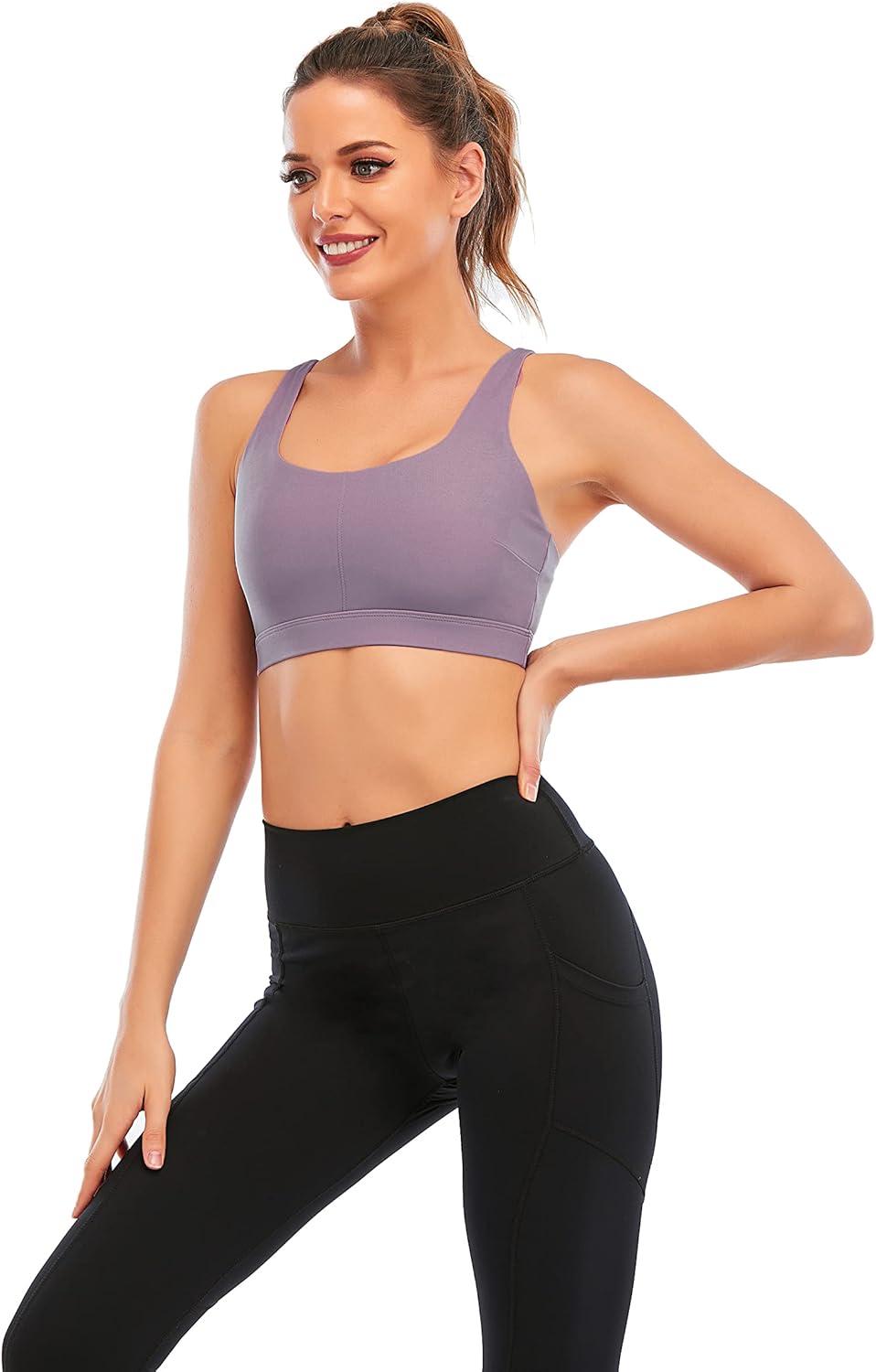 RUNNING GIRL Sports Bra for Women, Sexy Crisscross Back Medium Support Padded Strappy Yoga Bra with Removable Cups(B-purple)