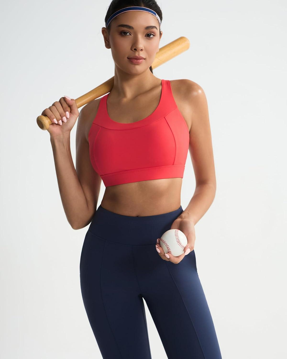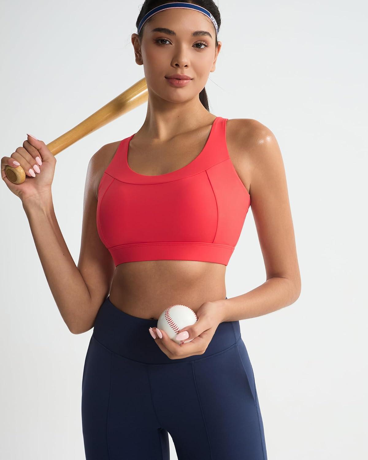 RUNNING GIRL Sports Bra for Women,Adjustable Straps Molded Cup High Impact Sports Bras for Women with Sewn in Pads(Deep Red)