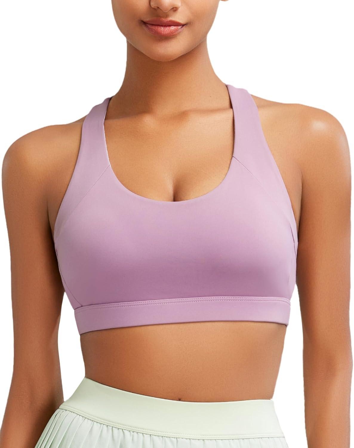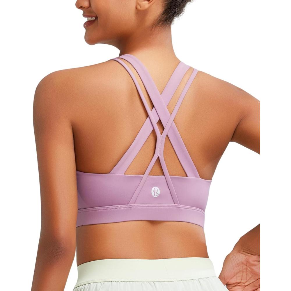 RUNNING GIRL Sports Bras for Women, Criss-Cross Back Padded Strappy Sports Bras Medium Support Yoga Bra with Removable Cups(1-taro Purple)