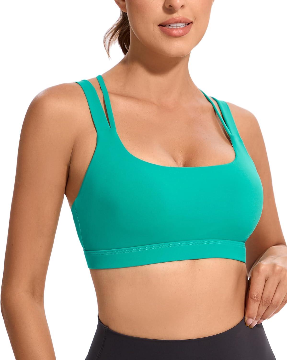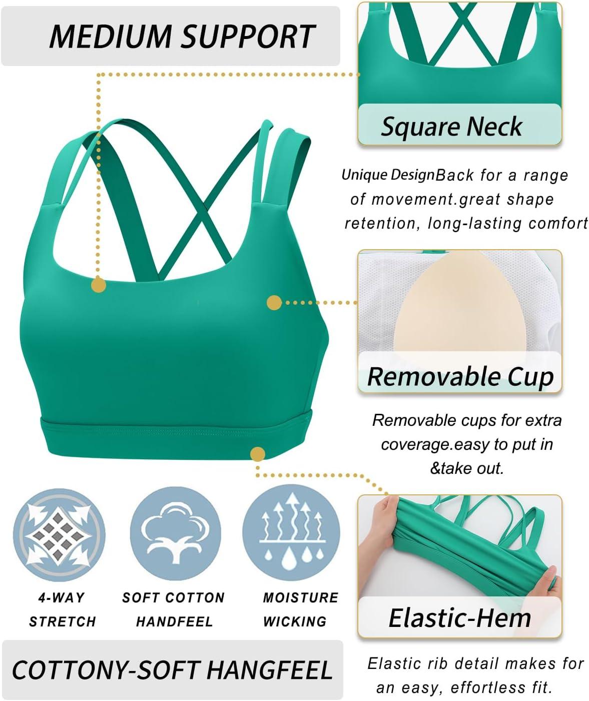RUNNING GIRL Sports Bras for Women, Criss-Cross Back Padded Strappy Sports Bras Medium Support Yoga Bra with Removable Cups(D-vivid Green)