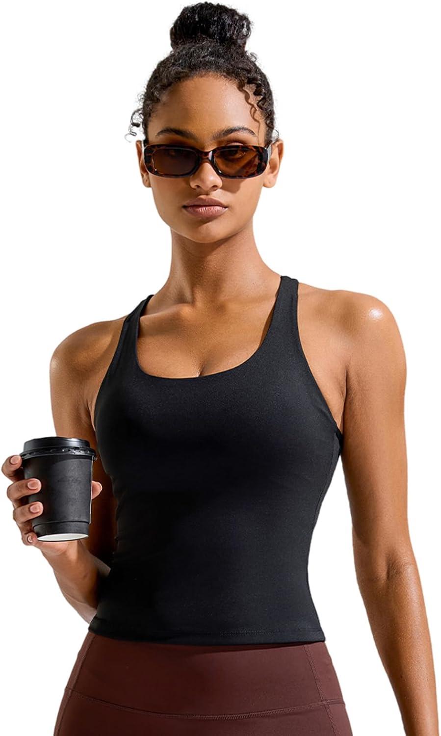 RUNNING GIRL Sports Bras for Women High Impact Seamless Ribbed Longline High Neck Workout Crop Tank Tops Padded(A-black)