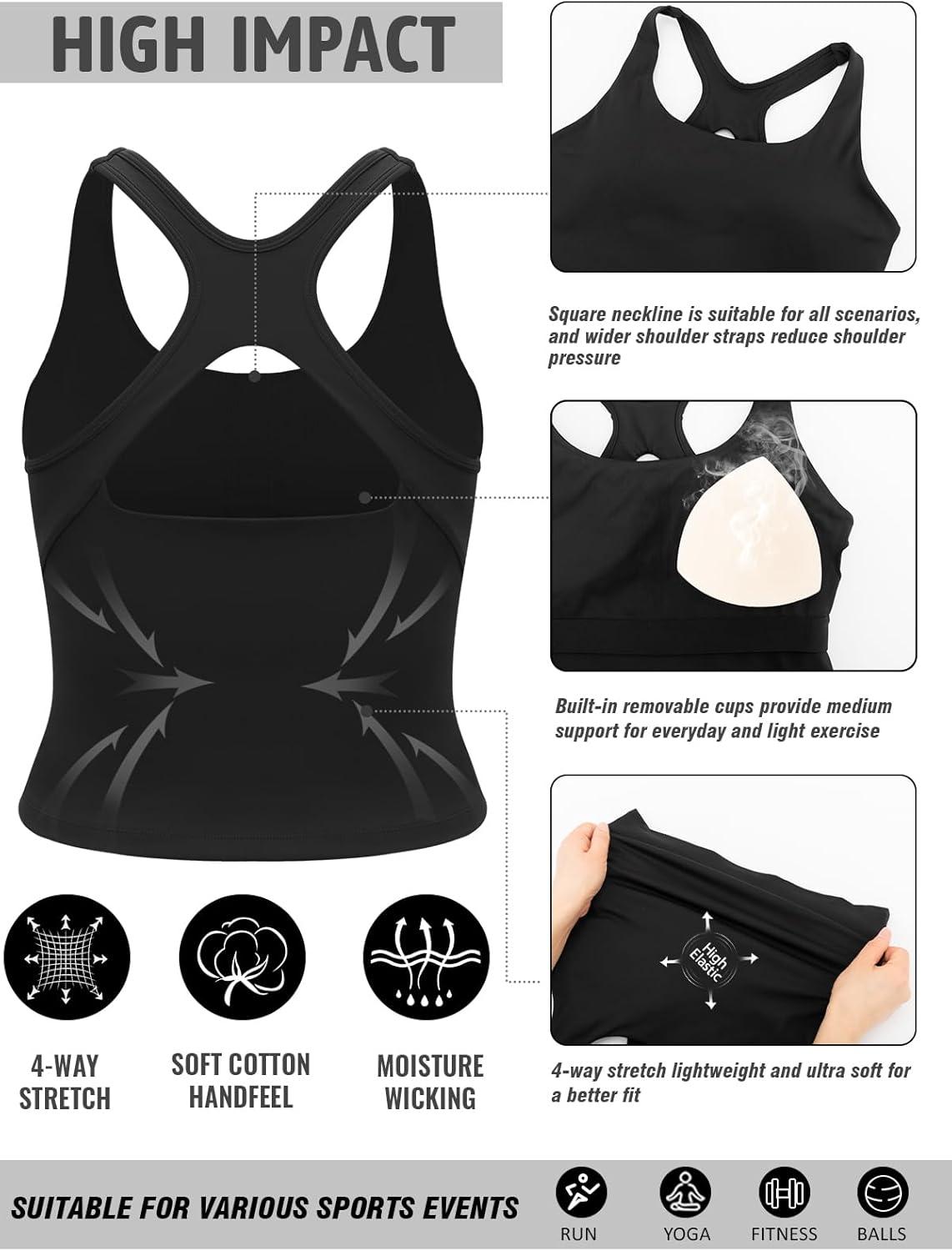 RUNNING GIRL Sports Bras for Women High Impact, Molded Cup Compression Running Tops with Removable Pads, Best for A-D Cup