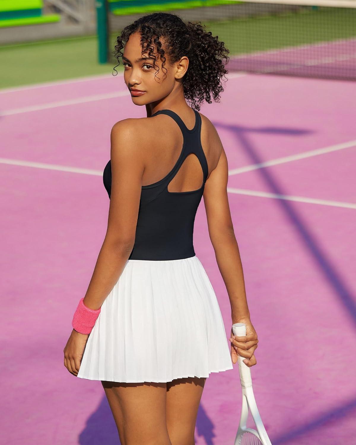 imageRUNNING GIRL Sports Bras for Women High Impact Seamless Ribbed Longline High Neck Workout Crop Tank Tops PaddedAblack
