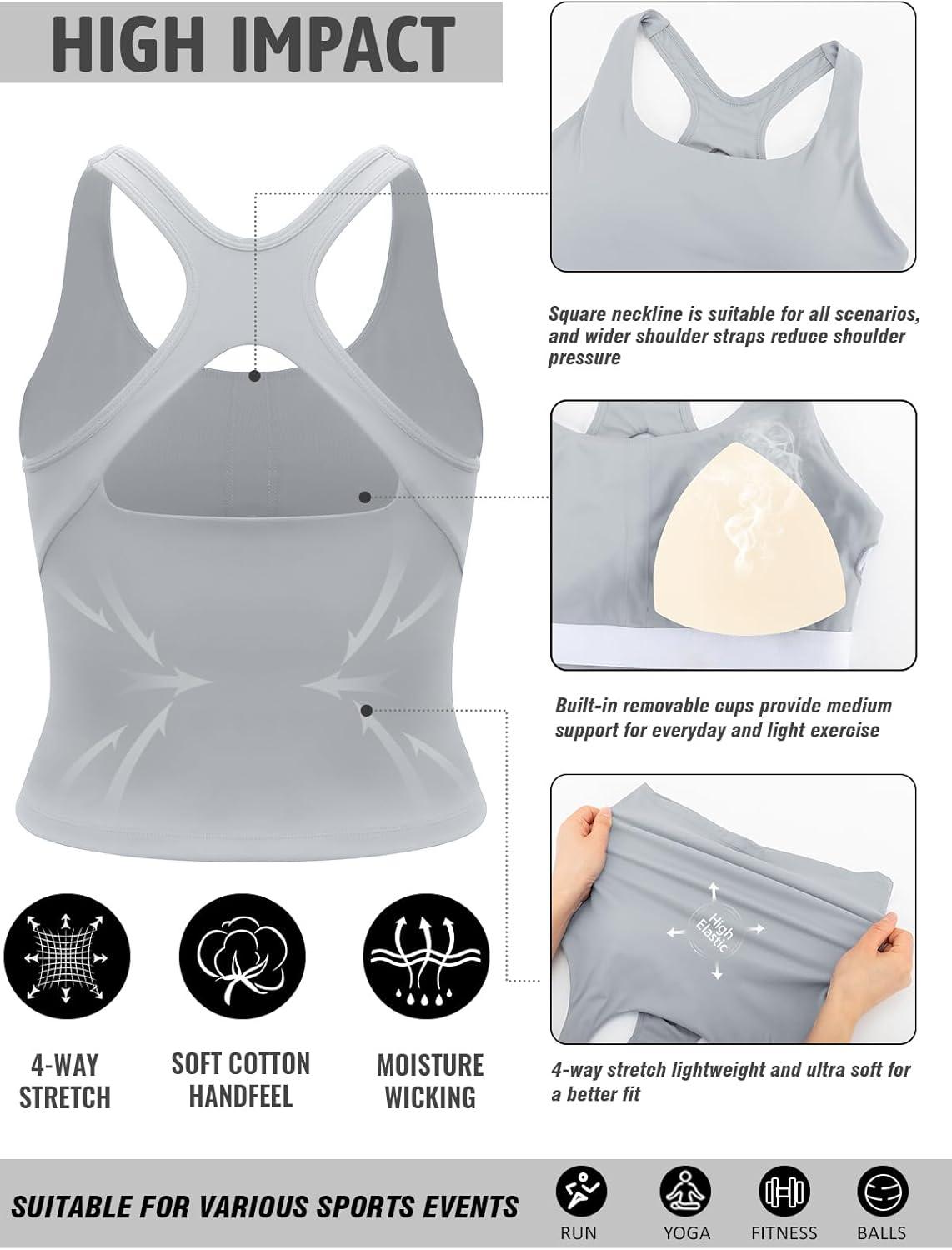 RUNNING GIRL Sports Bras for Women High Impact, Molded Cup Compression Running Tops with Removable Pads, Best for A-D Cup(Grey)
