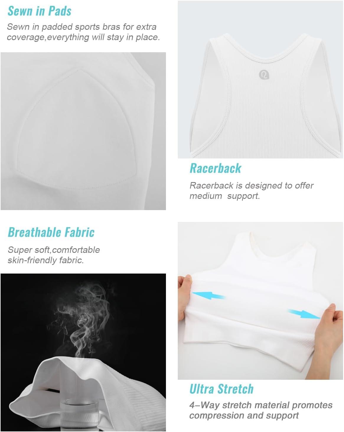 Be the first to review “RUNNING GIRL Sports Bras for Women High Impact Seamless Ribbed Longline High Neck Workout Crop Tank Tops Padded(A-white)”