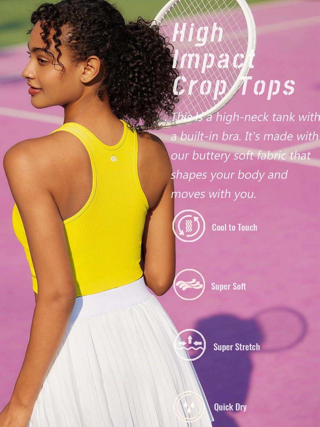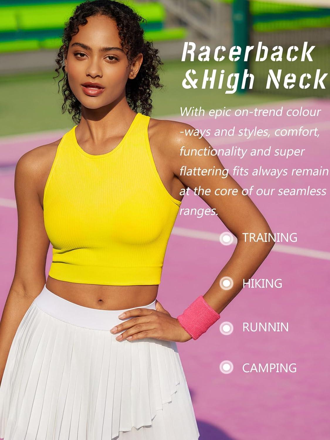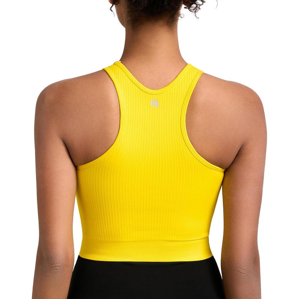RUNNING GIRL Sports Bras for Women High Impact Seamless Ribbed Longline High Neck Workout Crop Tank Tops Padded(A-yellow)