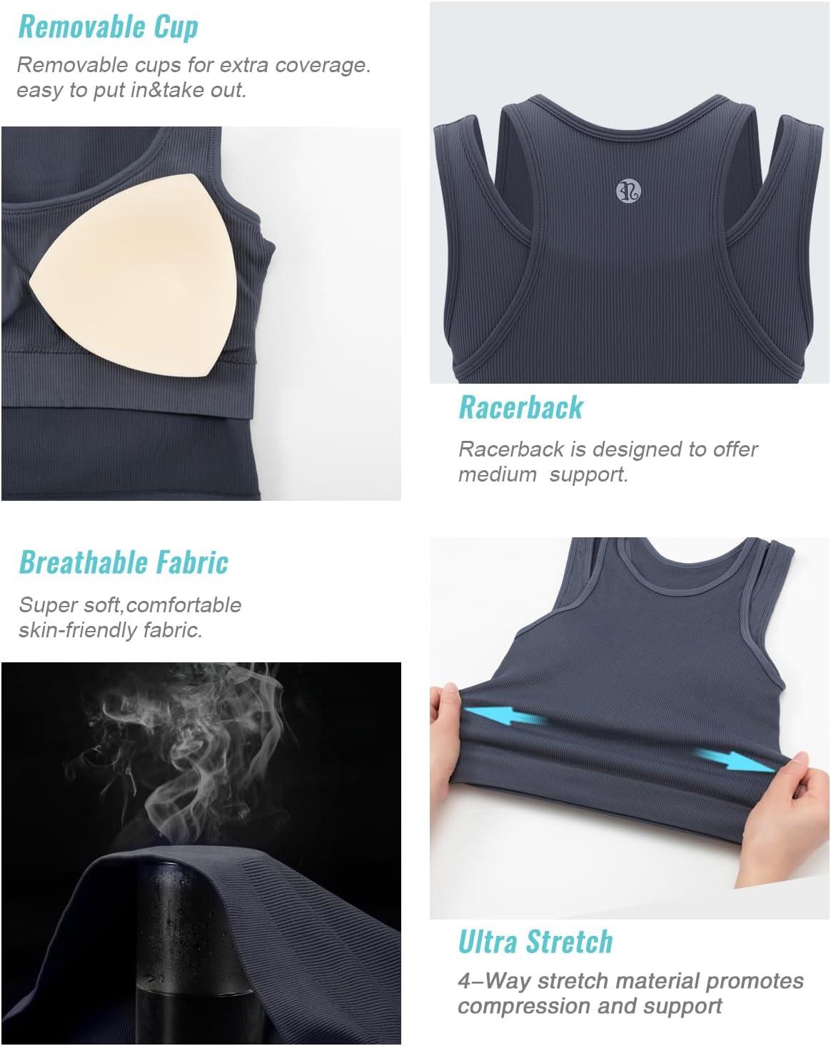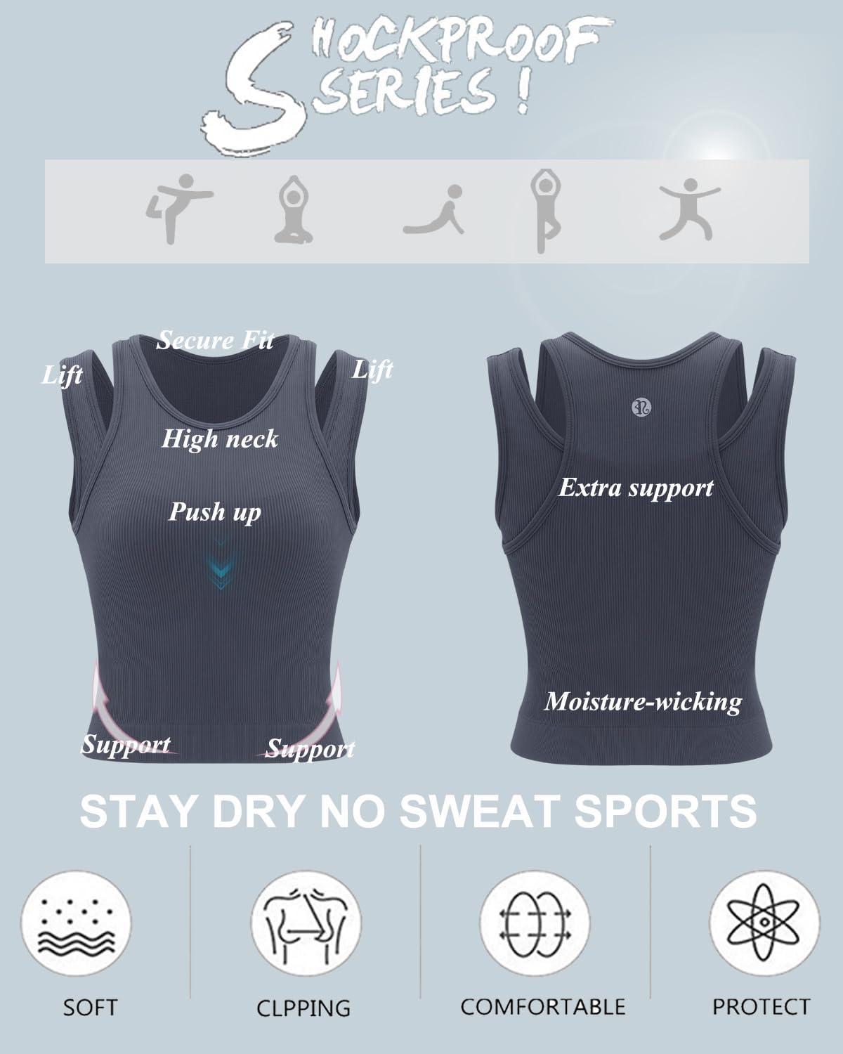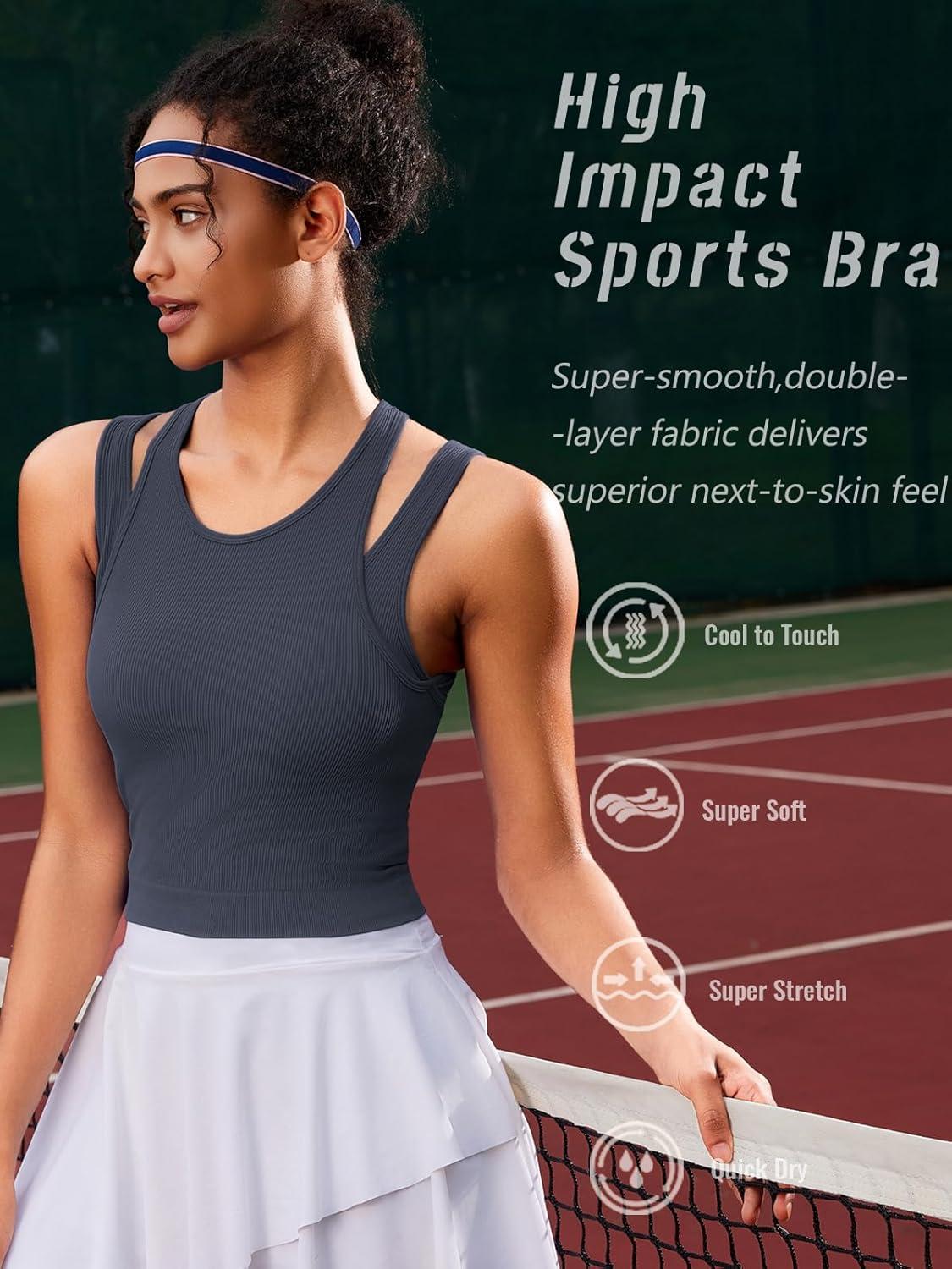 Be the first to review “RUNNING GIRL Sports Bras for Women High Impact Seamless Ribbed Longline High Neck Workout Crop Tank Tops Padded(B-dark Grey)”