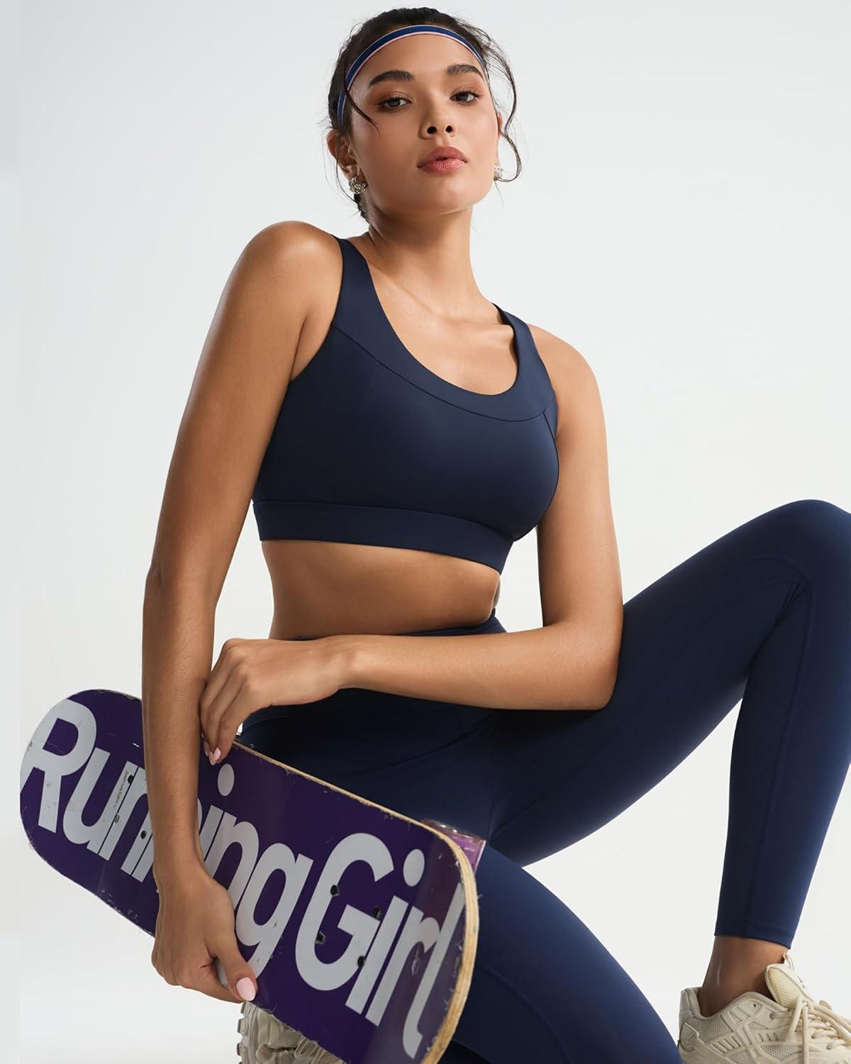 RUNNING GIRL Sports Bras for Women High Support, Adjustable Straps High Impact Molded Cup Sports Bra with Sewn in Pads(Navy Blue)