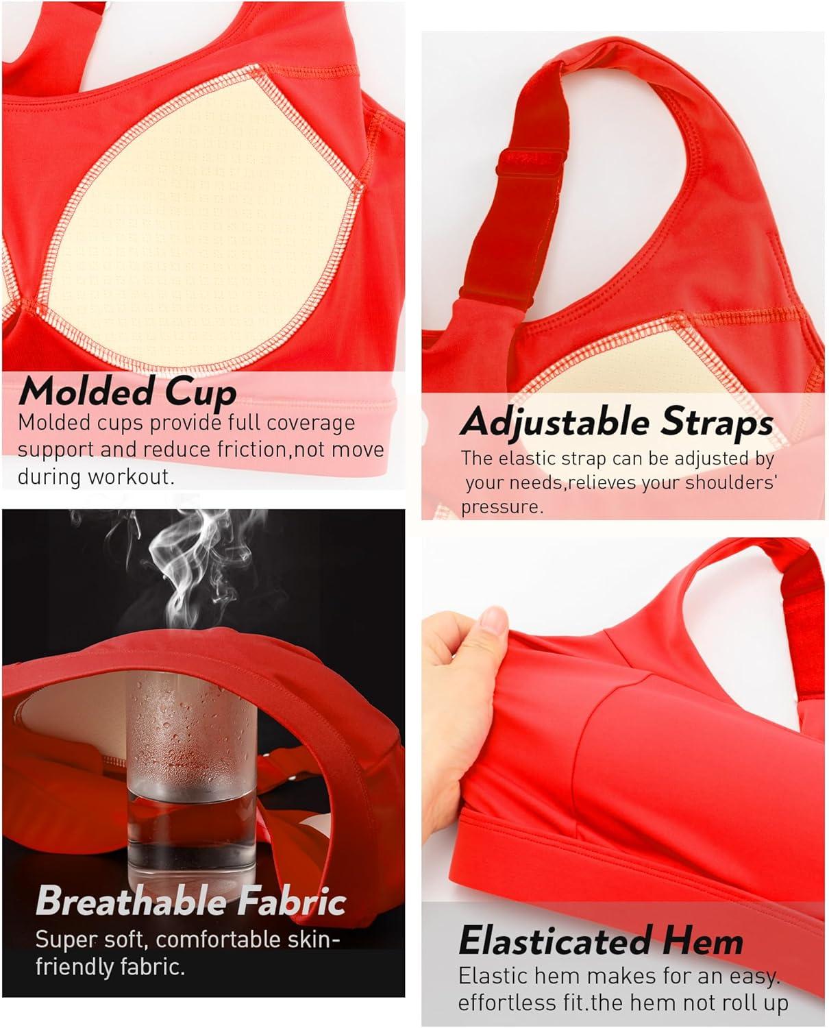 RUNNING GIRL Sports Bras for Women High Support, Adjustable Straps High Impact Molded Cup Sports Bra with Sewn in Pads(Red)