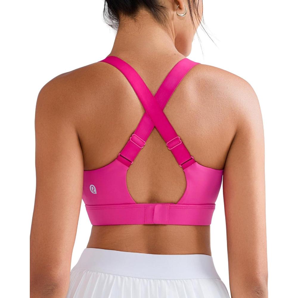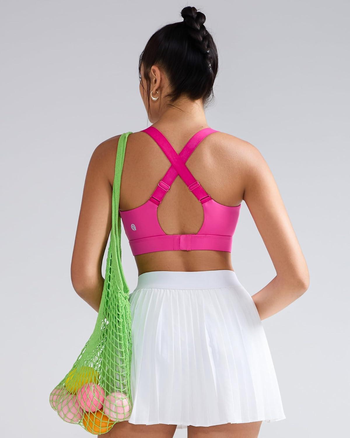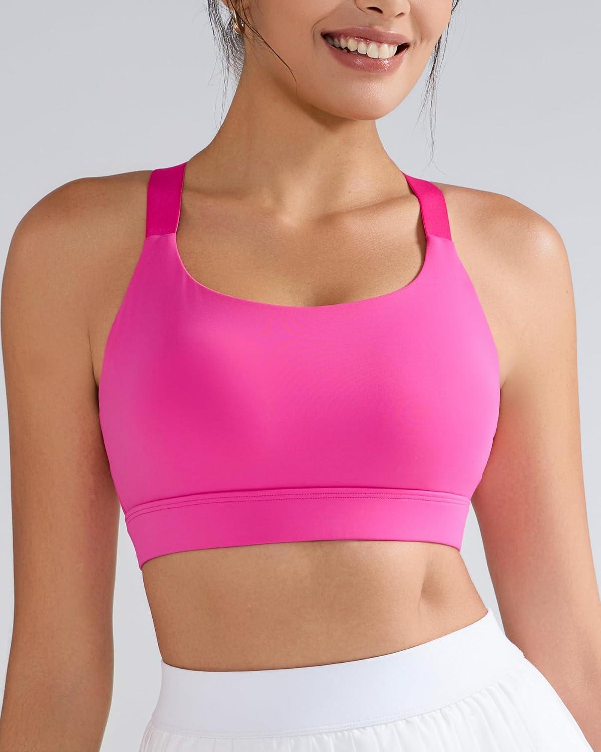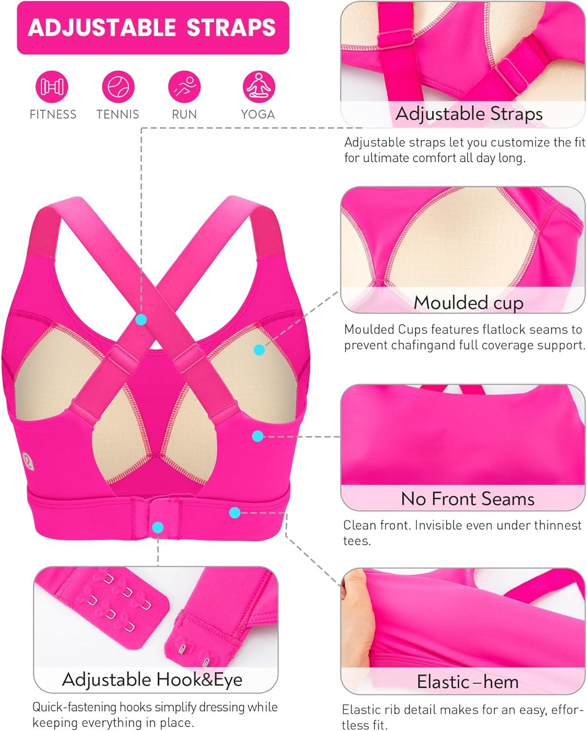 RUNNING GIRL Sports Bras for Women High Support, Adjustable Straps Hook Back Sports Bras for Women with Sewn in Pads(Hot Pink)