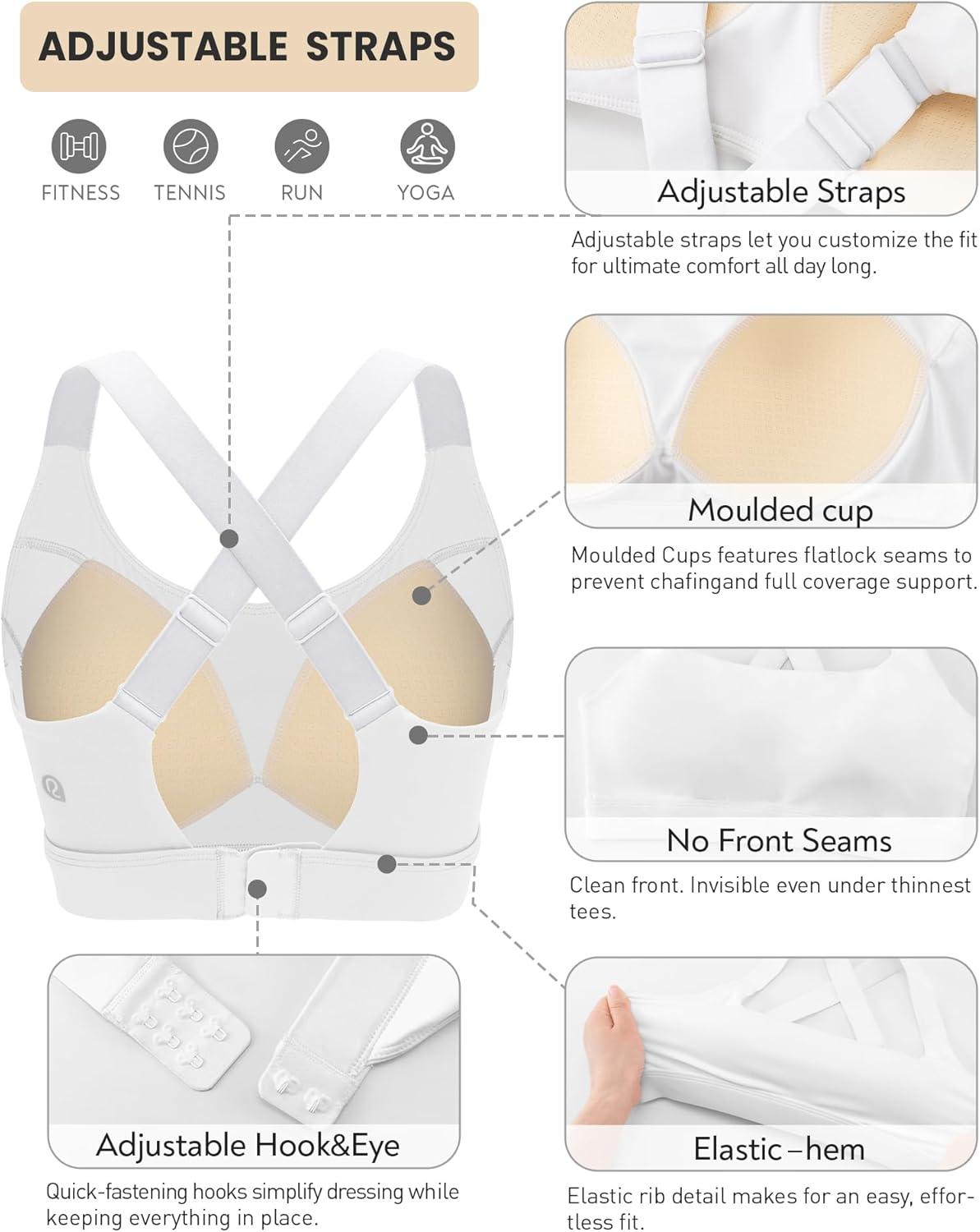 RUNNING GIRL Sports Bras for Women High Support, Adjustable Straps Hook Back Sports Bras for Women with Sewn in Pads(White)
