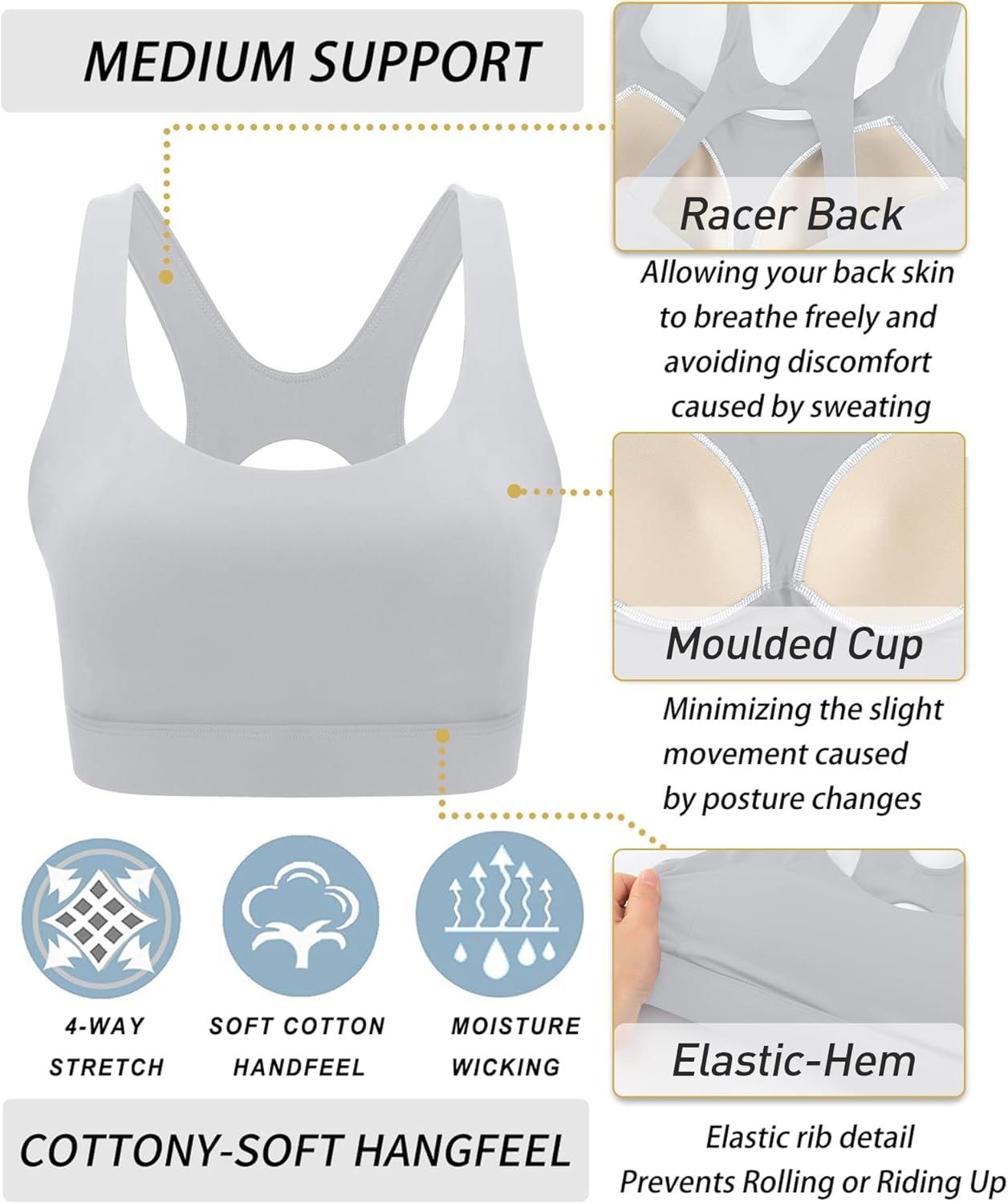 RUNNING GIRL Sports Bras for Women High Support, High Impact Racerback Molded Cup Sports Bra Workout Yoga Bras(Grey)