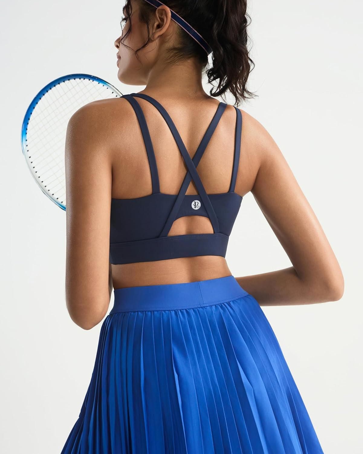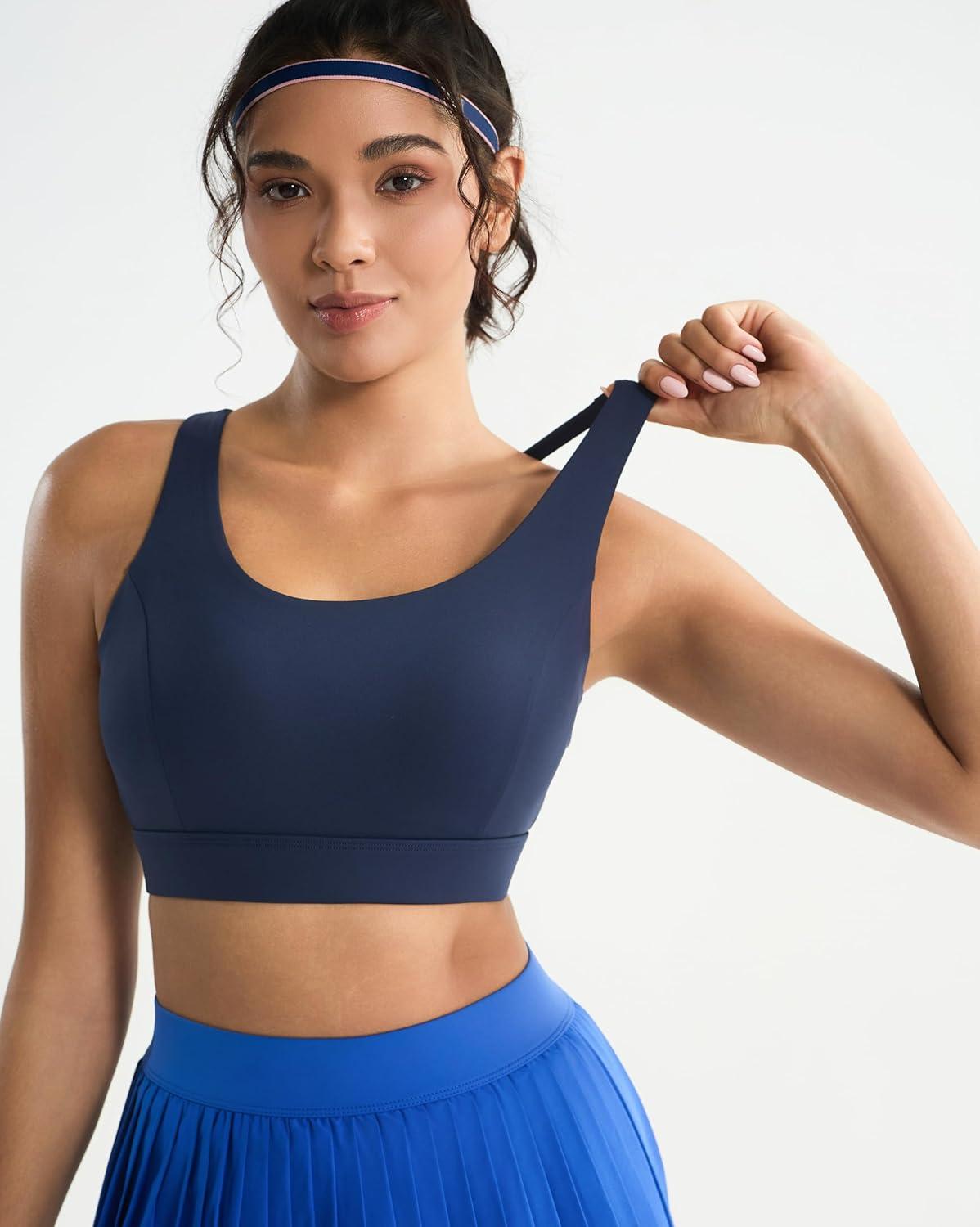RUNNING GIRL Sports Bras for Women High Support, Molded Cup Strappy High Impact Sports Bras for Women with Sewn in Pads(Navy Blue)