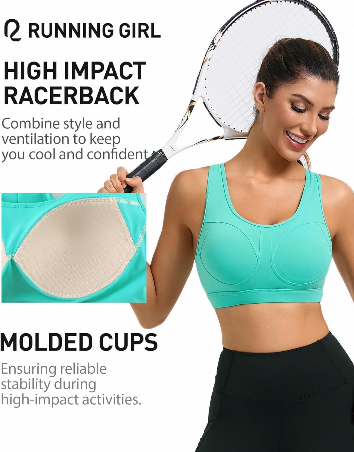 RUNNING GIRL Sports Bras for Women High Support Moulded Cup High Impact Sports Bras Racerback Workout Running Yoga Bra(3045 Lake Green)