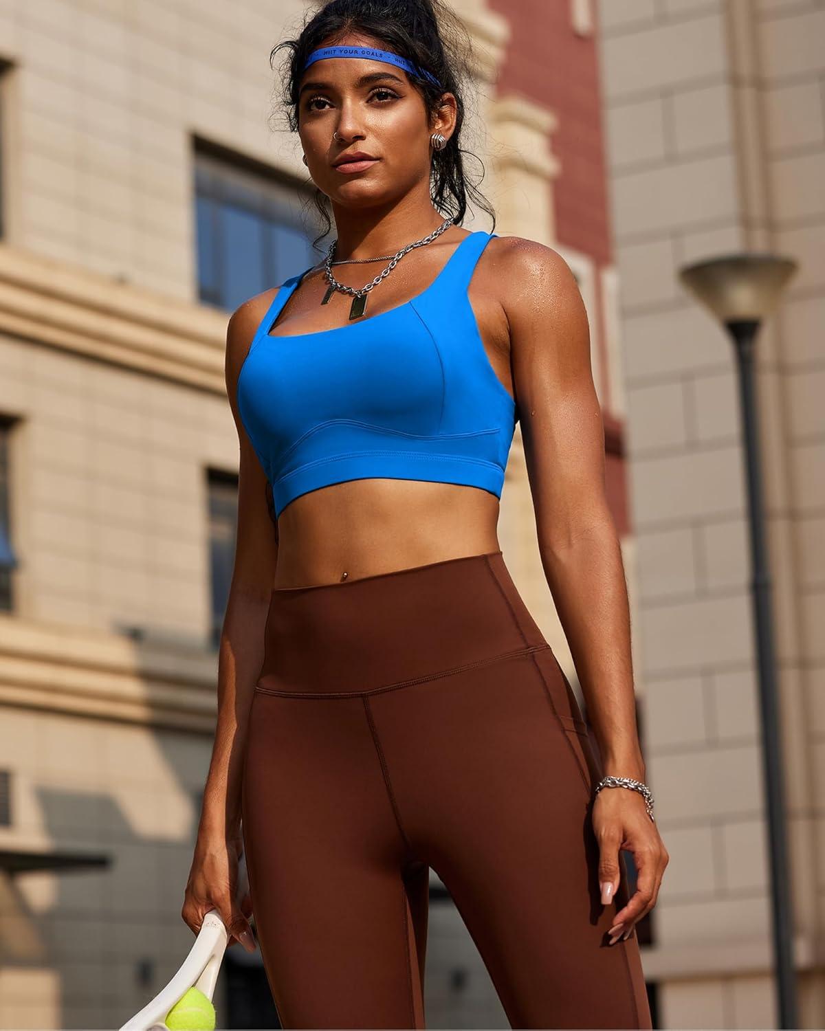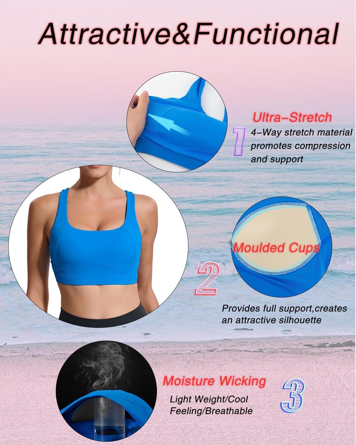 RUNNING GIRL Sports Bras for Women High Support,Racerback High Impact Grey Sports Bra Moulded Cup Workout Bra Push up(D-bright Blue)