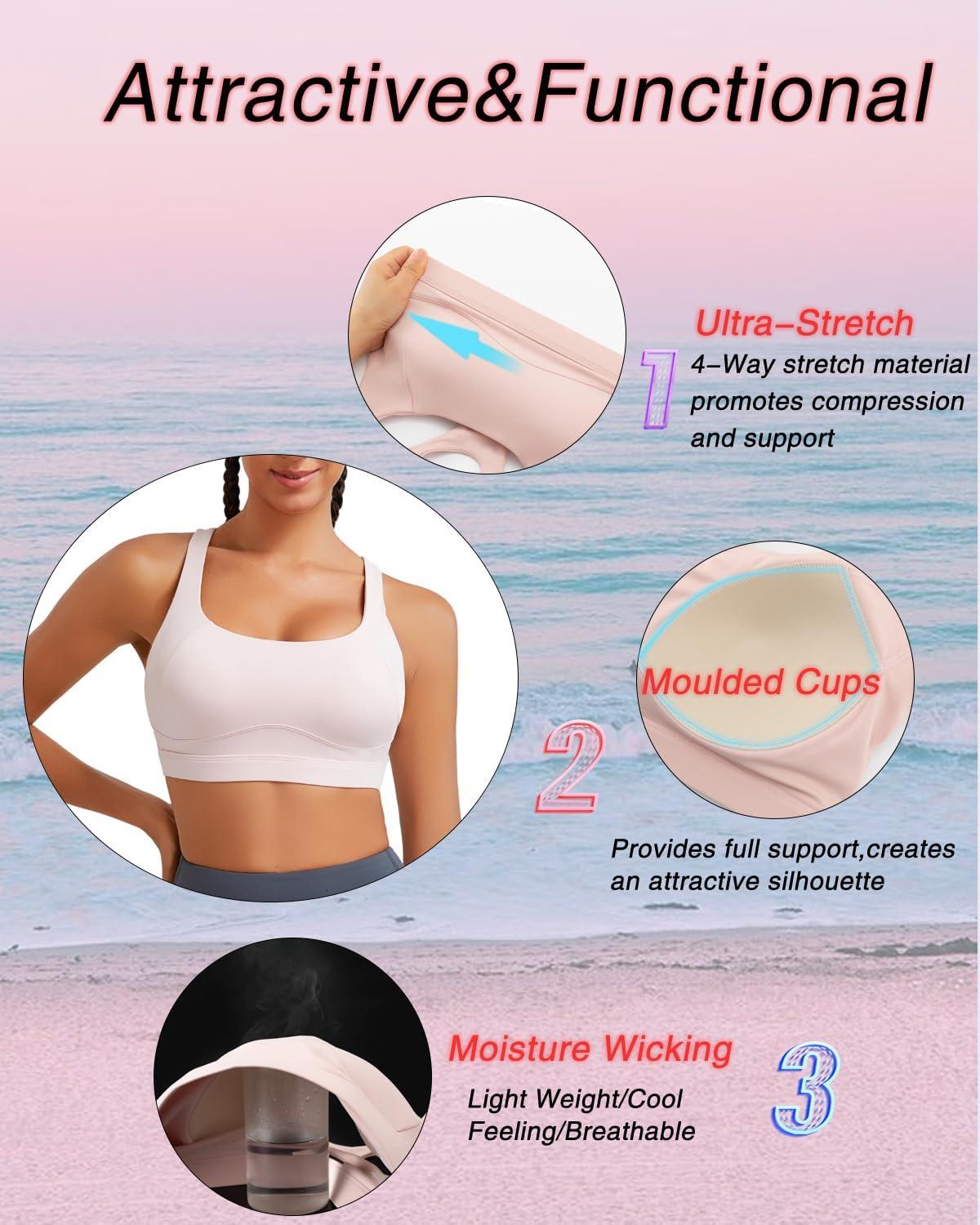 RUNNING GIRL Sports Bras for Women High Support,Racerback High Impact Grey Sports Bra Moulded Cup Workout Bra Push up(D-pink)