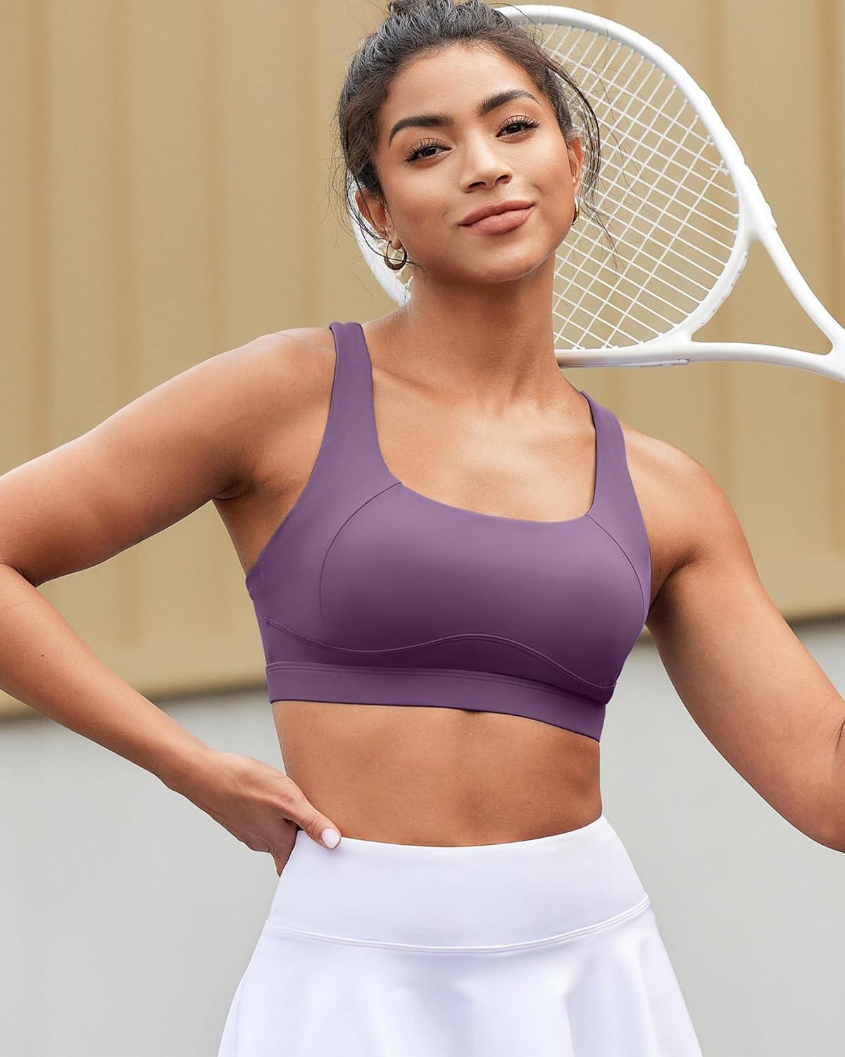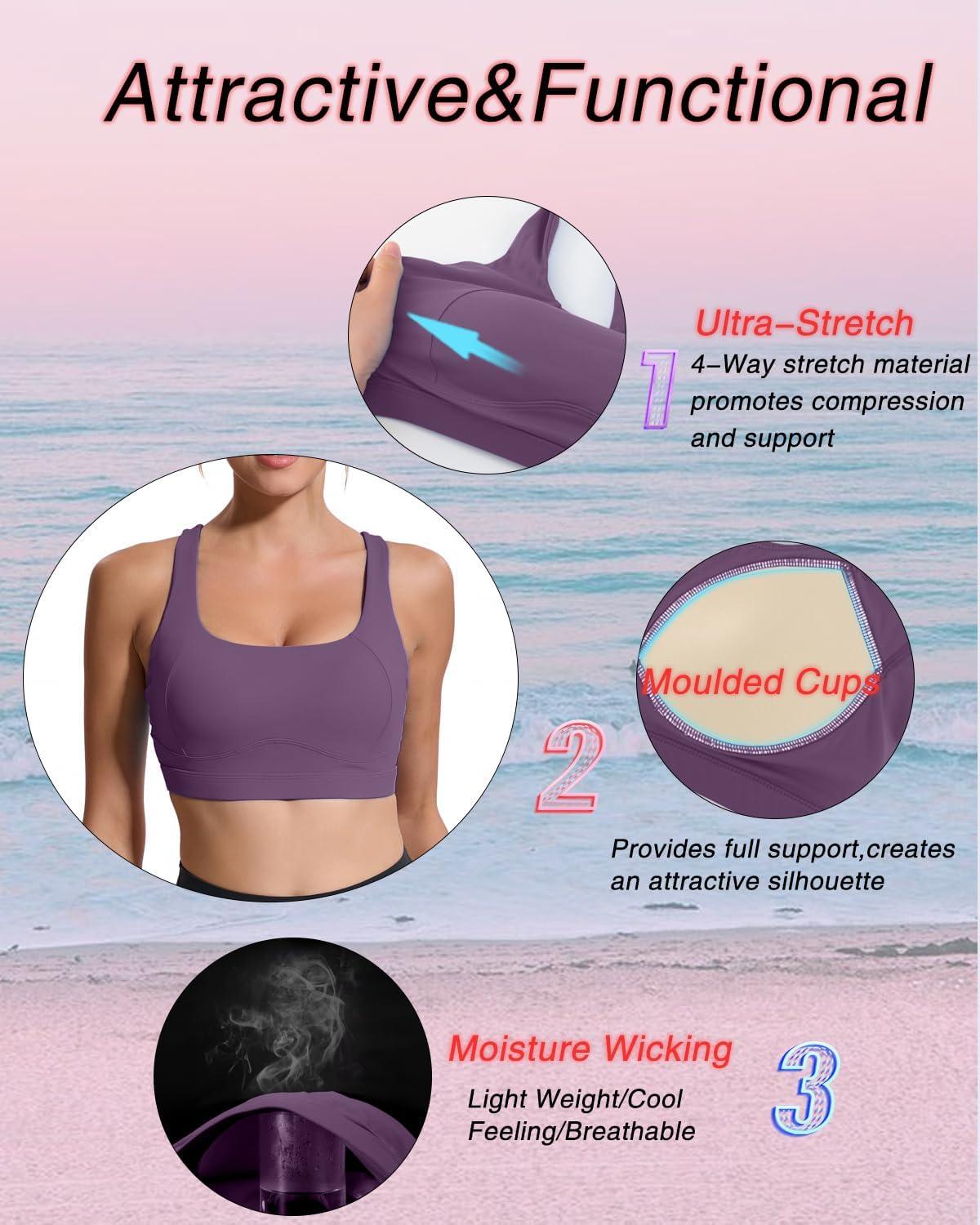RUNNING GIRL Sports Bras for Women High Support,Racerback High Impact Grey Sports Bra Moulded Cup Workout Bra Push up(D-purple)