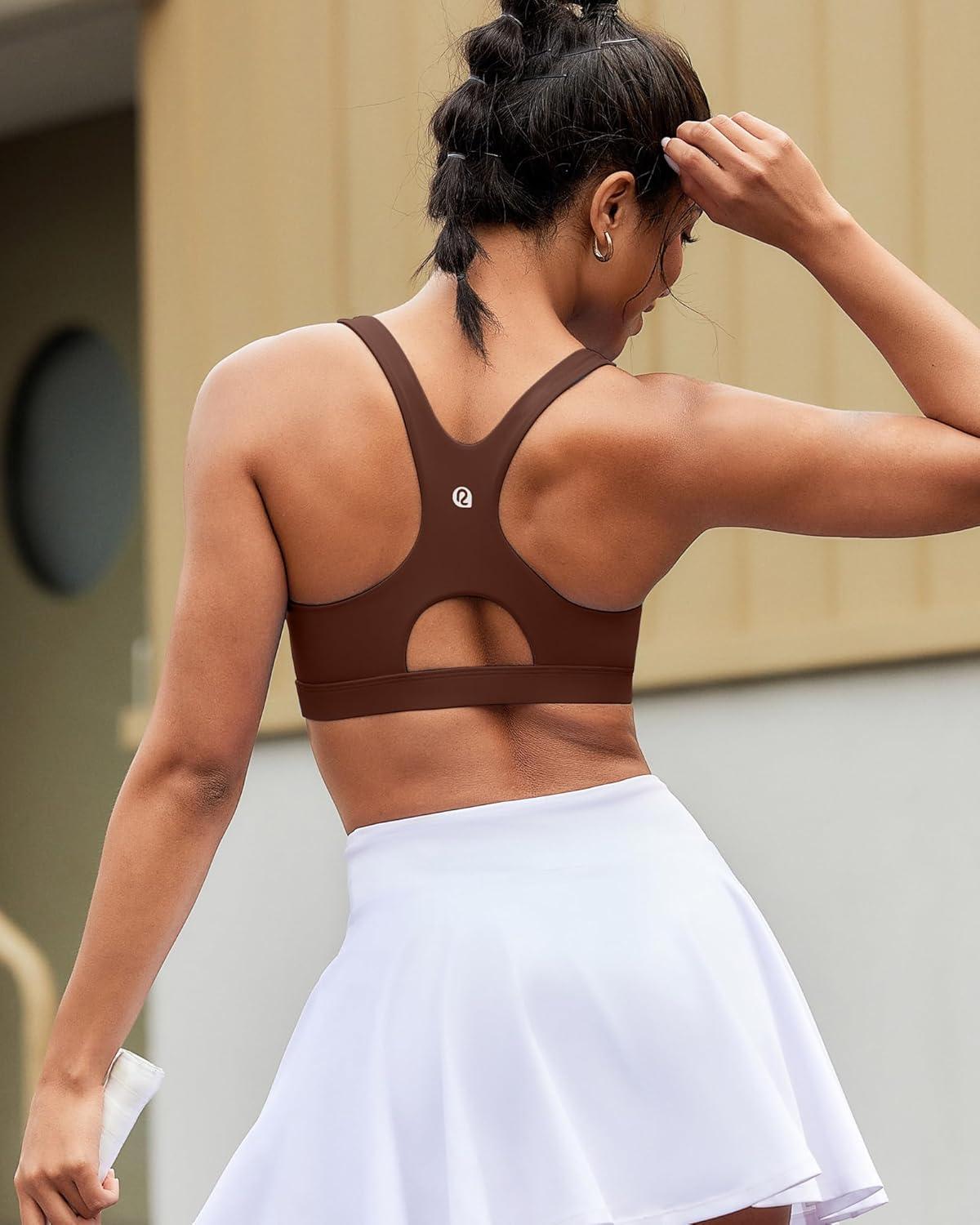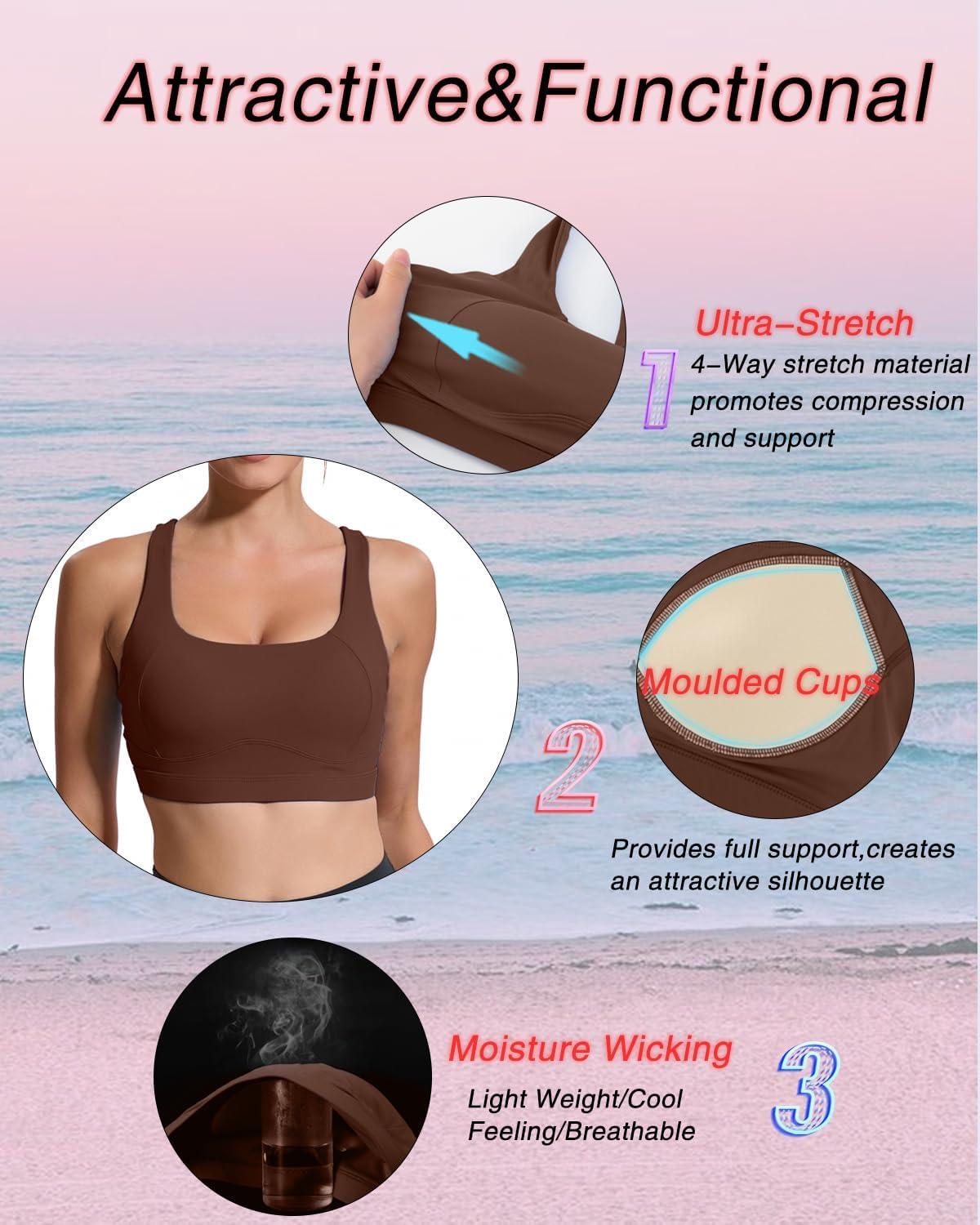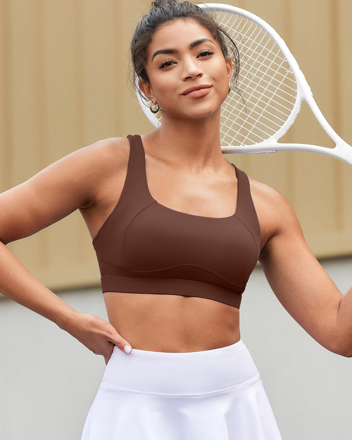 RUNNING GIRL Sports Bras for Women High Support,Racerback High Impact Grey Sports Bra Moulded Cup Workout Bra Push up(D-taupe)