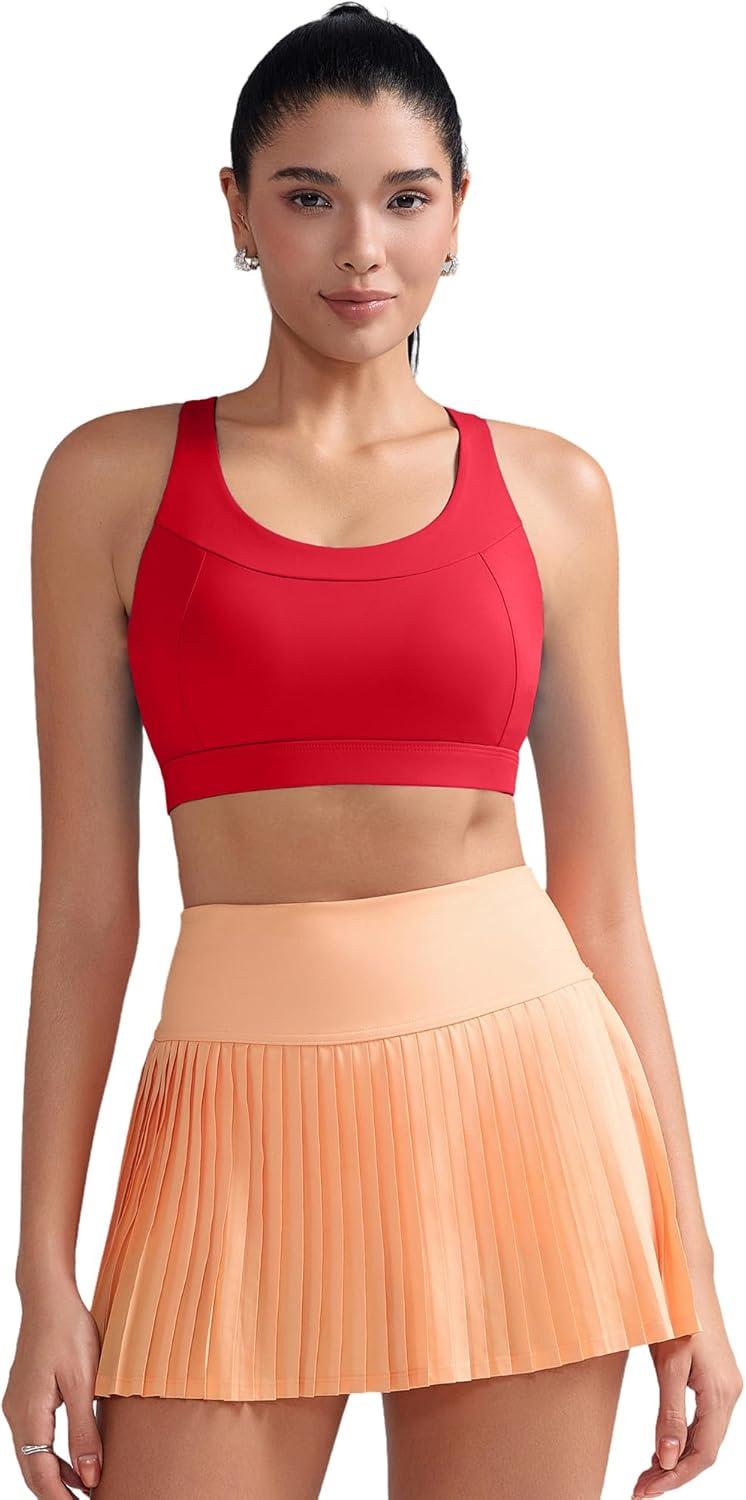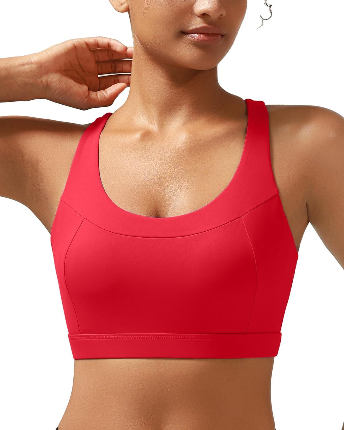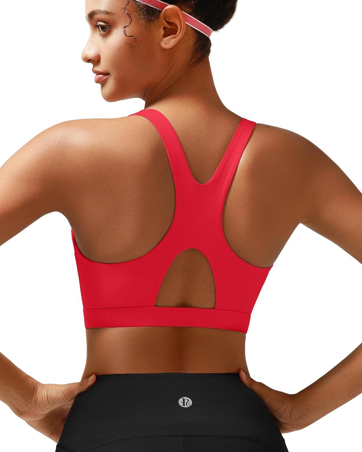 RUNNING GIRL Sports Bras for Women High Support,Racerback Molded Cup Sports Bra with Sewn in Pads(A-deep Red)